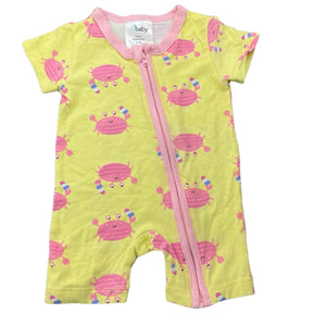 4 Baby stretchy zip romper, crabs, size 0000, Pre-loved