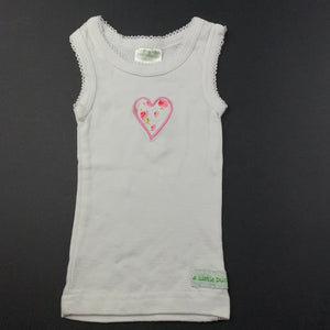 4 Little Ducks cotton singlet top, heart, size 00, Pre-loved
