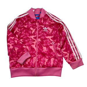 Adidas zip up track top, butterflies, *stains on cuffs*, size 3-4, Pre-loved