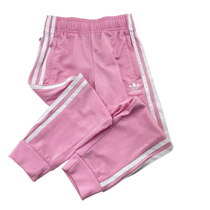 Adidas pink track pants, elasticated, inside leg: 41cm, size 5-6, Pre-loved