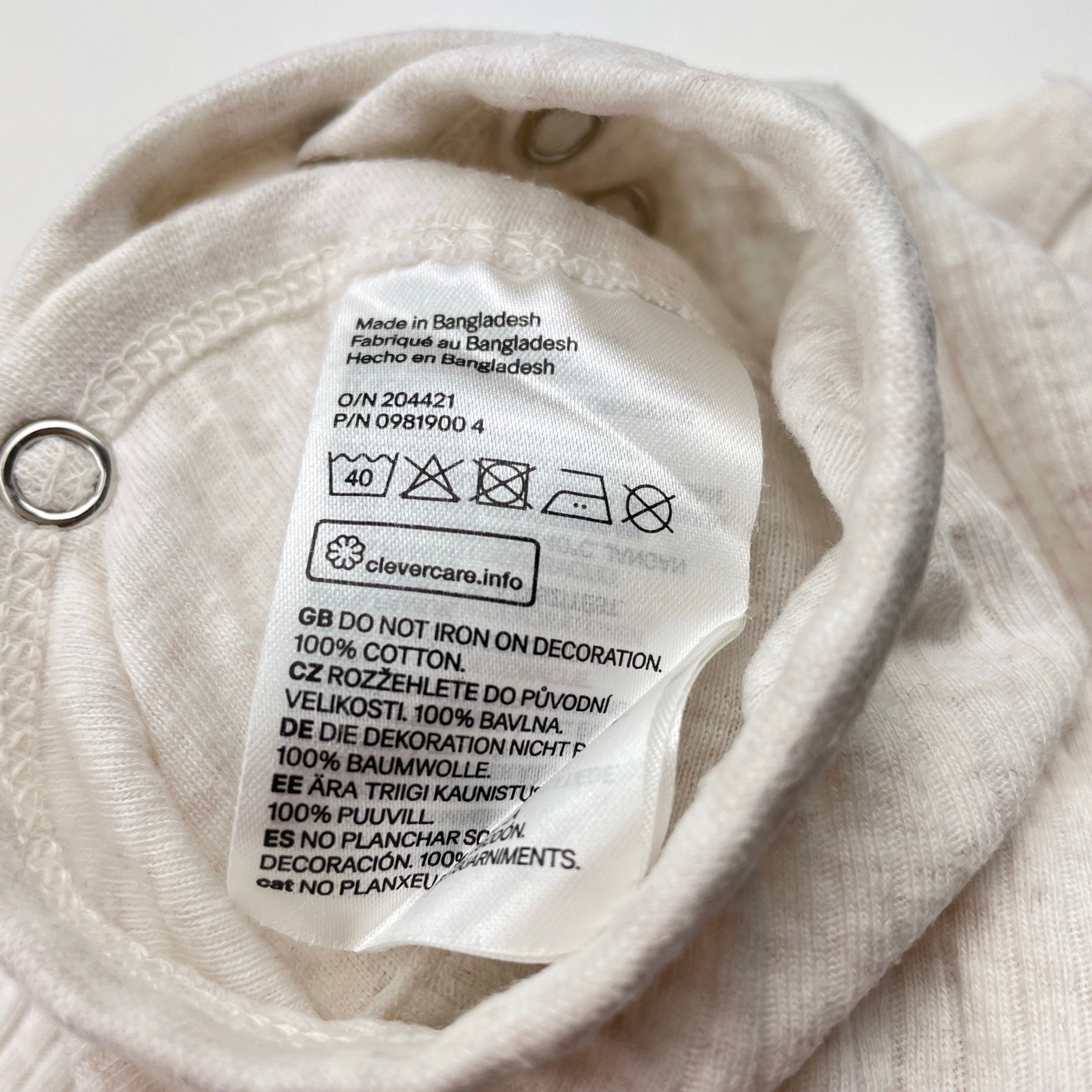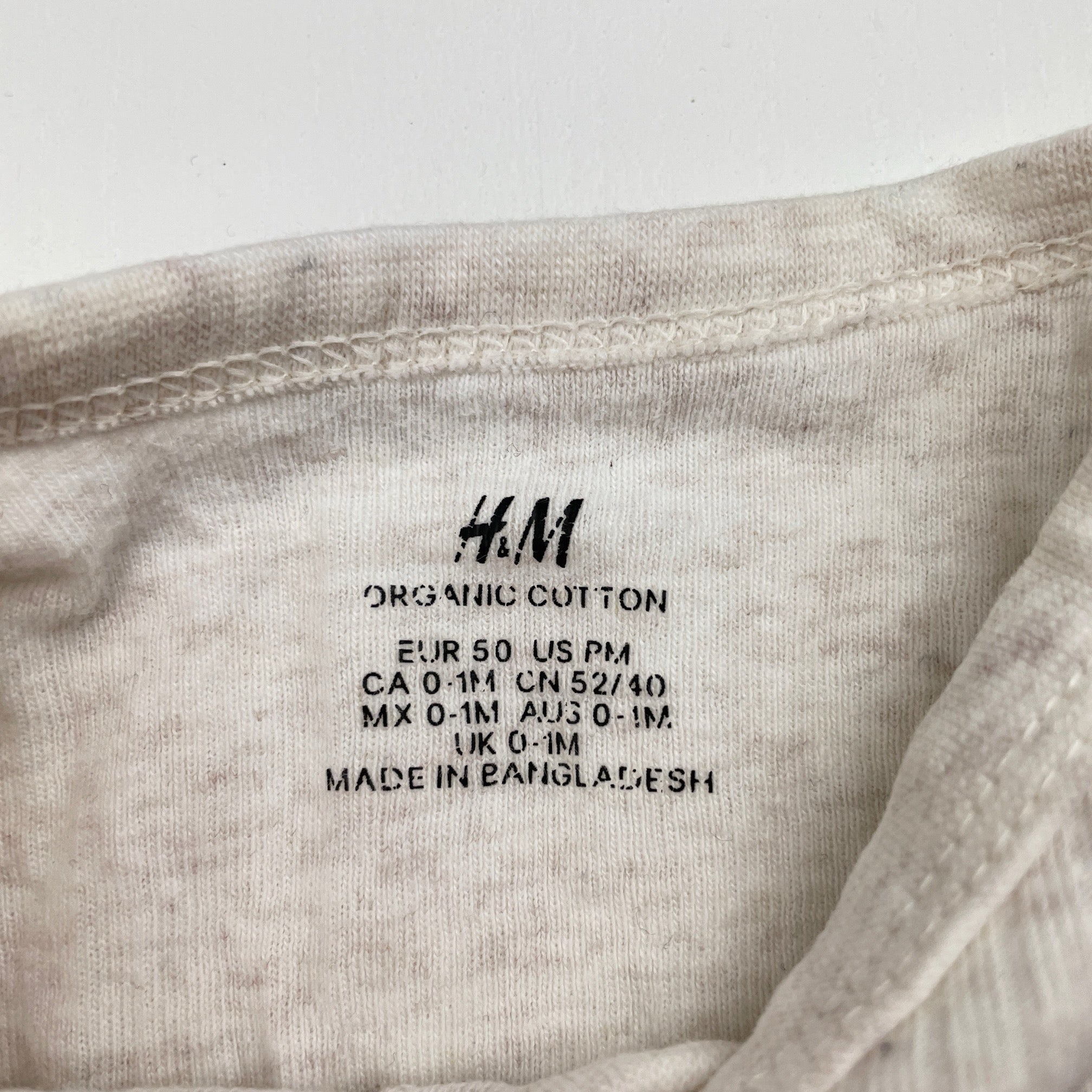 H&M ribbed organic cotton bodysuit / romper, size 0000, Pre-loved