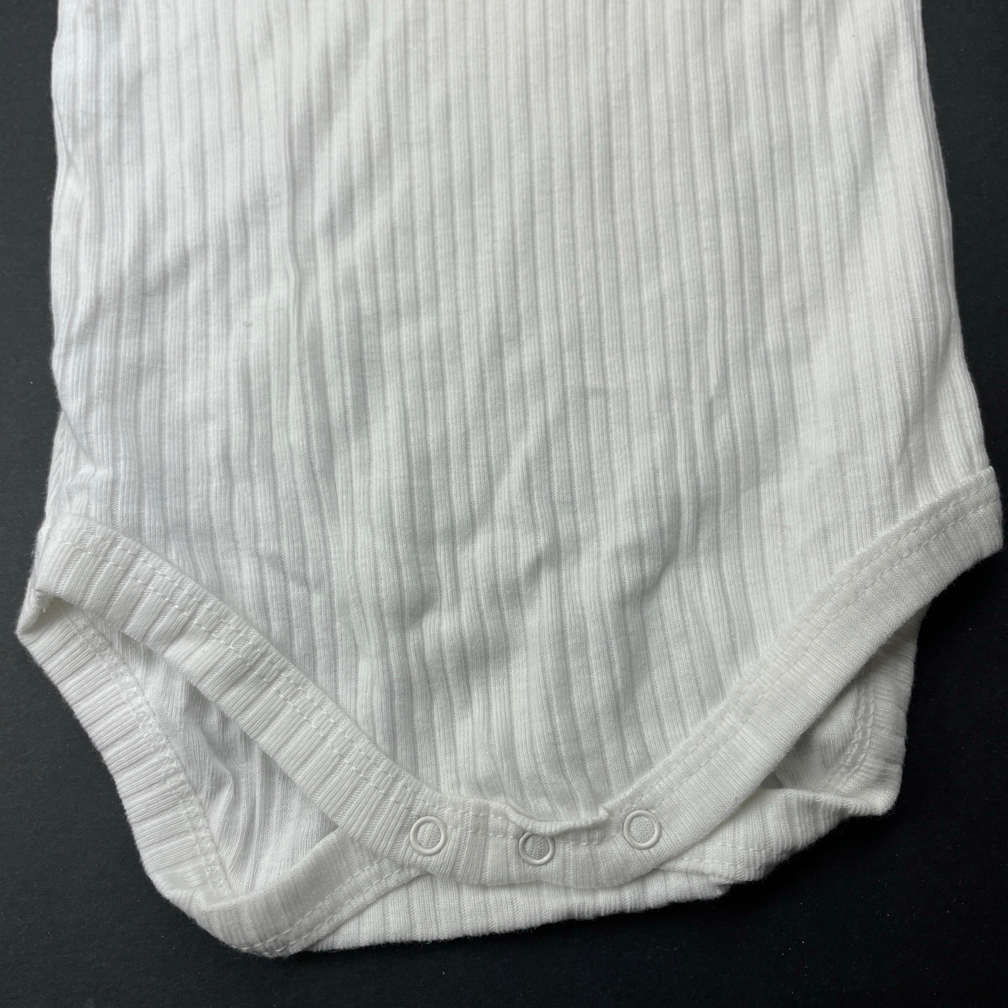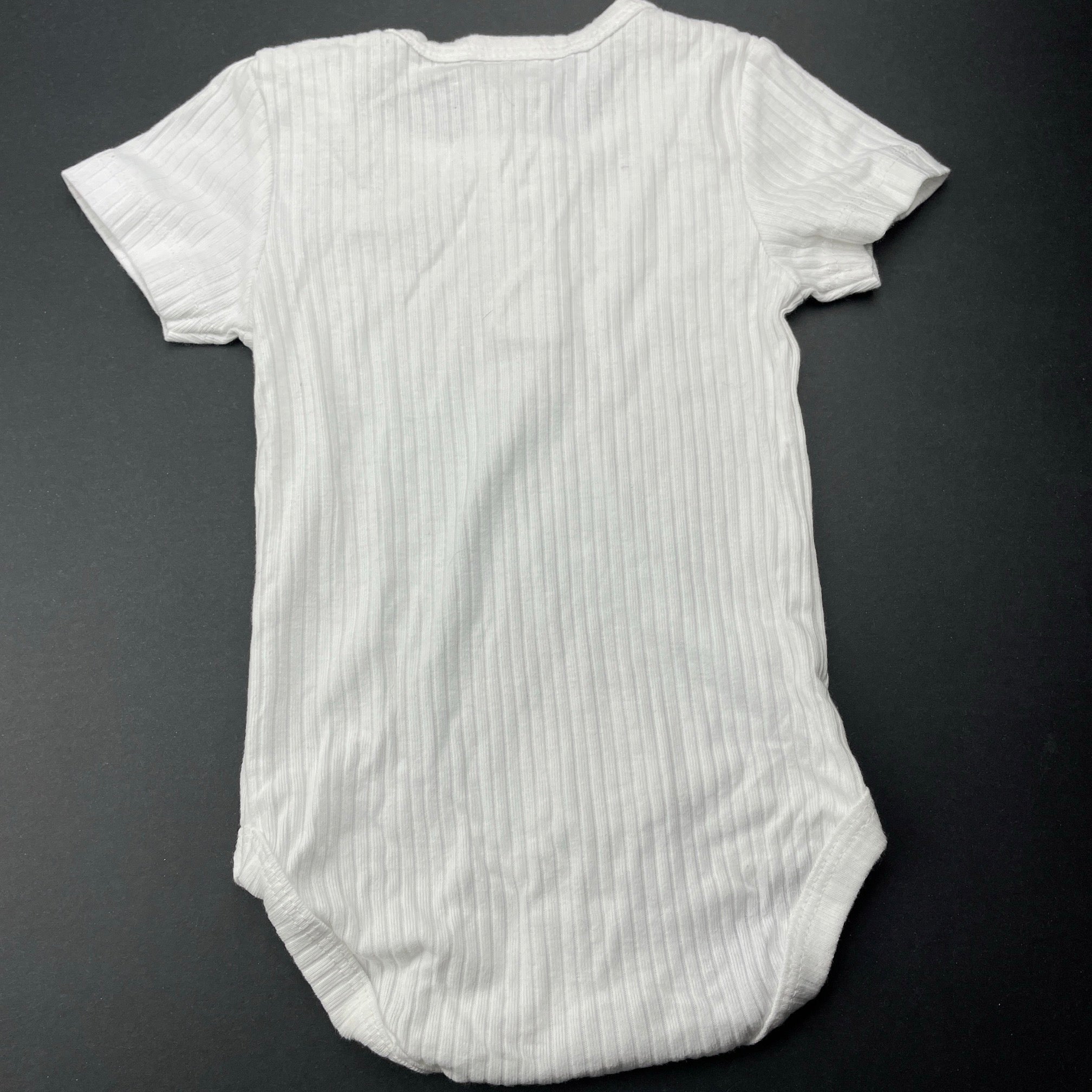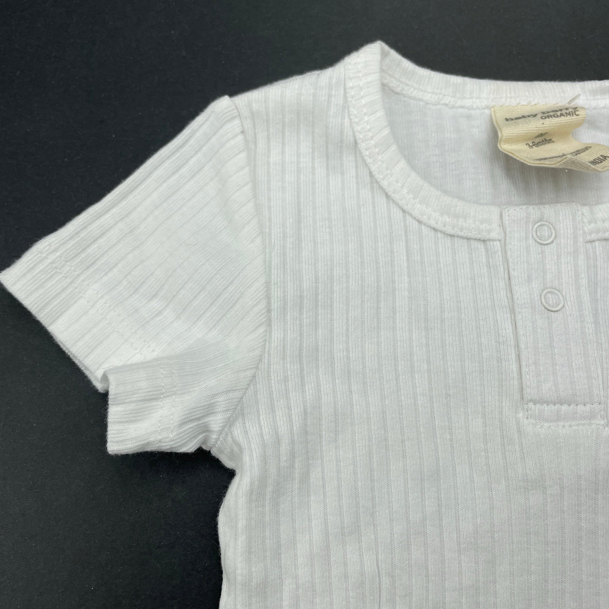 Baby Berry, white ribbed organic cotton bodysuit / romper, EUC, size 00,