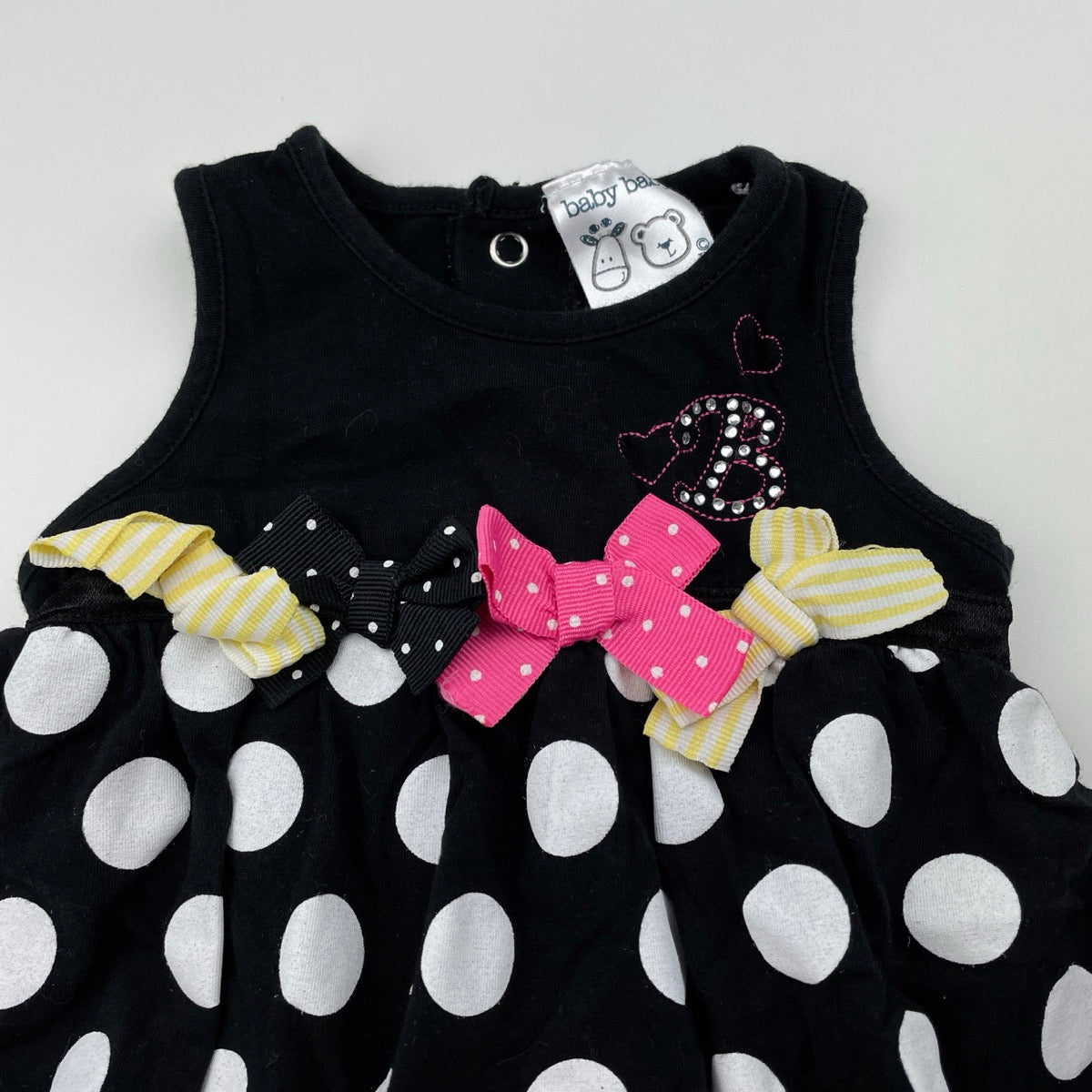 Baby Baby stretchy black & white bubble top, L: 30cm, size 0, Pre-loved