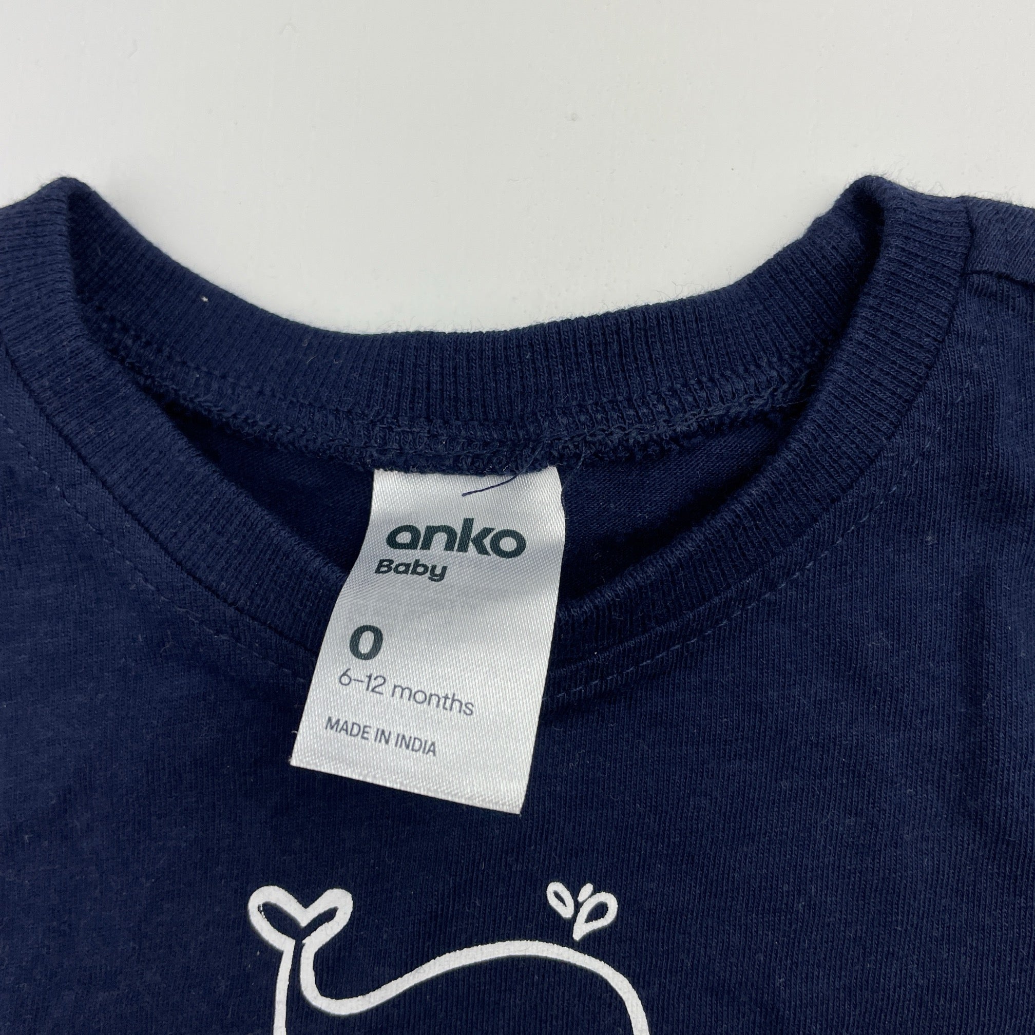 Anko navy cotton tee / top, whale, size 0, Pre-loved
