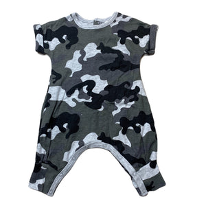 Baby Berry camo print cotton romper, size 0000, Pre-loved