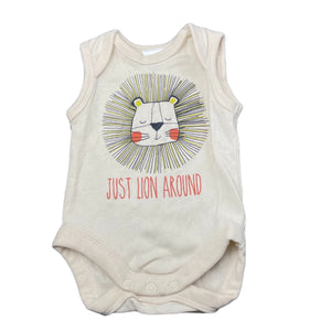 Baby Berry cotton bodysuit / romper, lion, size 0000, Pre-loved