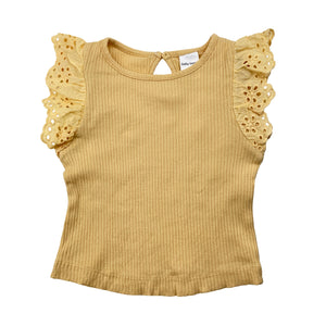 Baby Berry broderie trim ribbed tee / top, size 0, Pre-loved