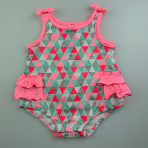 Baby Berry colourful cotton ruffle romper, size 000, Pre-loved