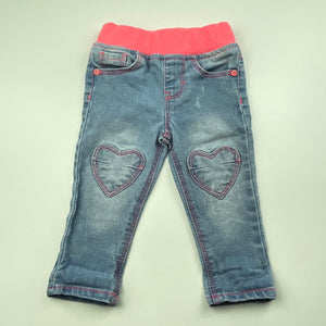 Baby Berry blue stretch denim pants, elasticated, size 00, Pre-loved