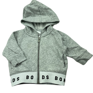 Bonds grey fleece lined zip hoodie sweater, size 000, Pre-loved