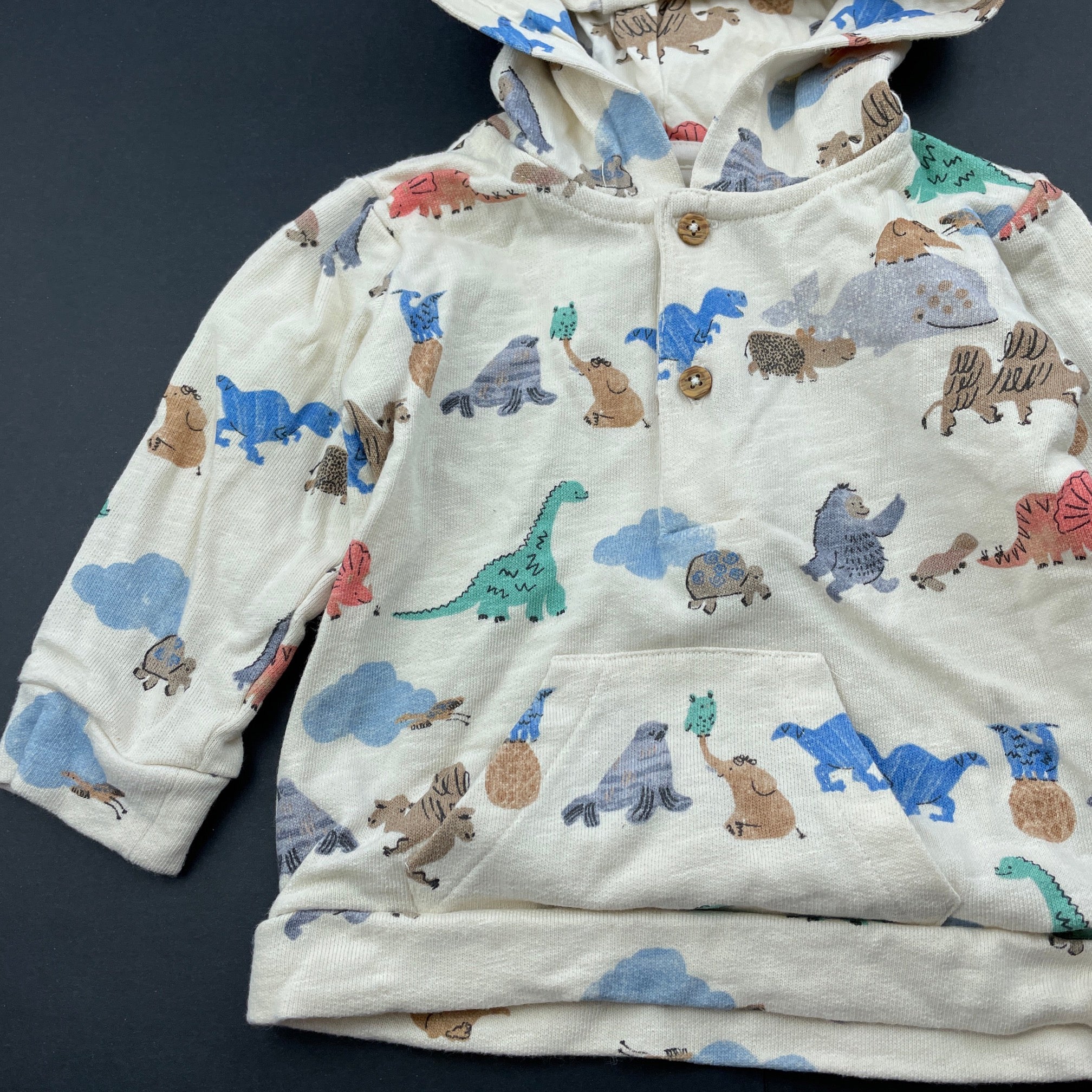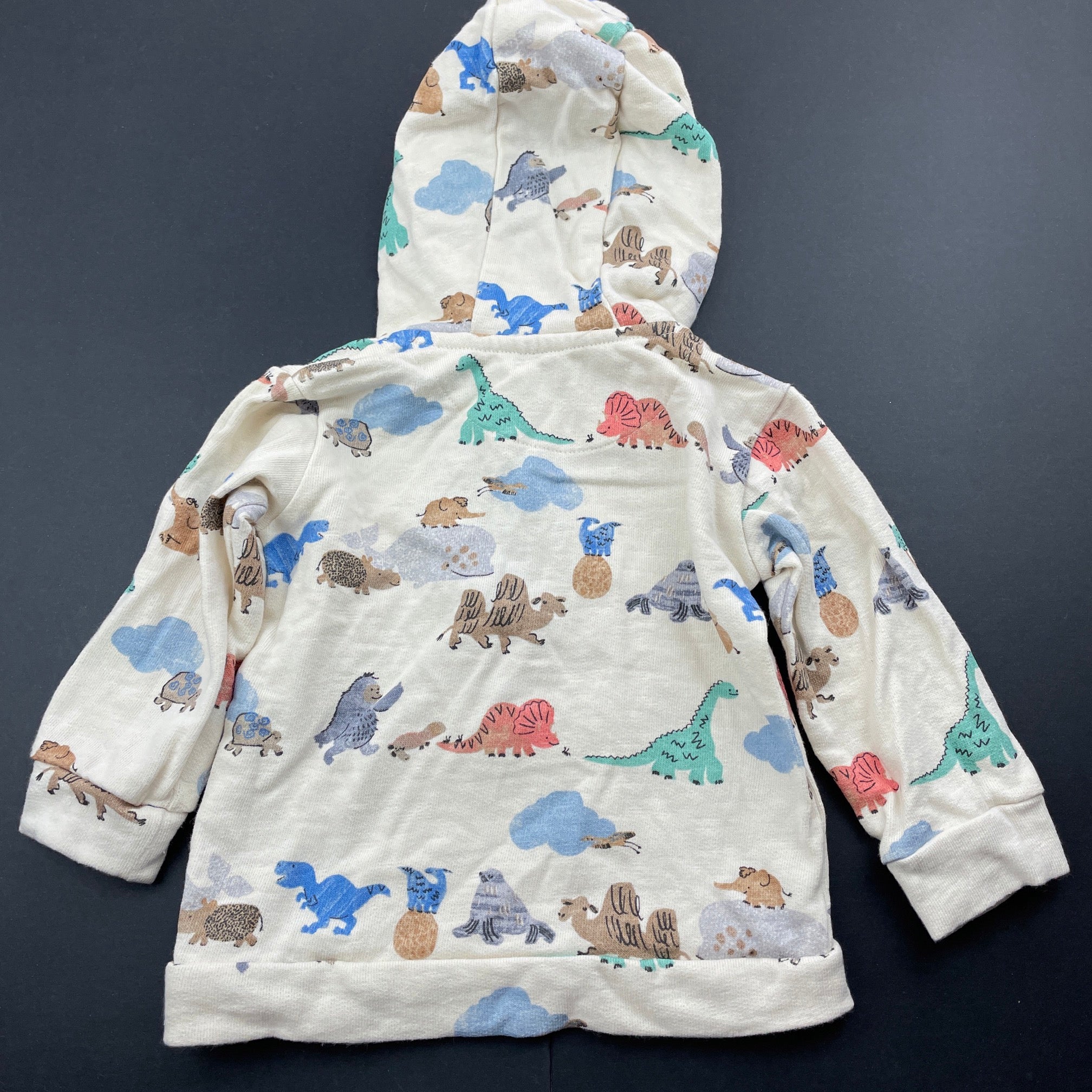 M&S, cotton hooded top, dinosaurs, EUC, size 0,