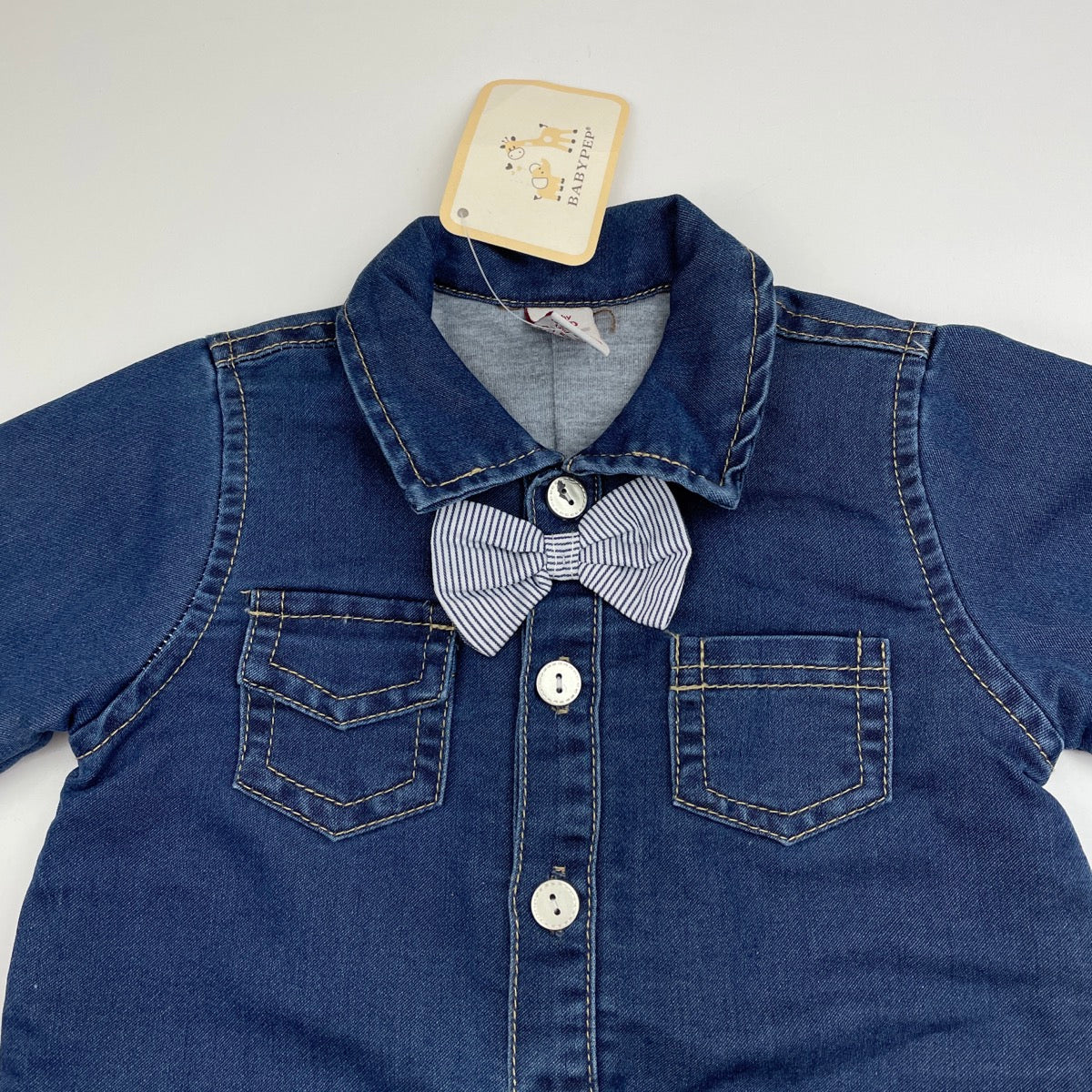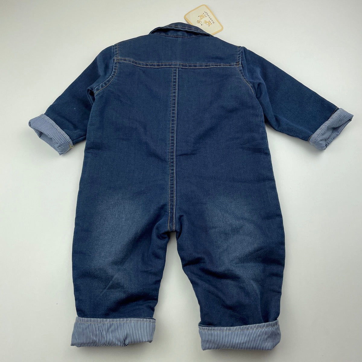 BABY PEP, cotton lined lightweight denim romper / boilersuit, NEW, size 0,