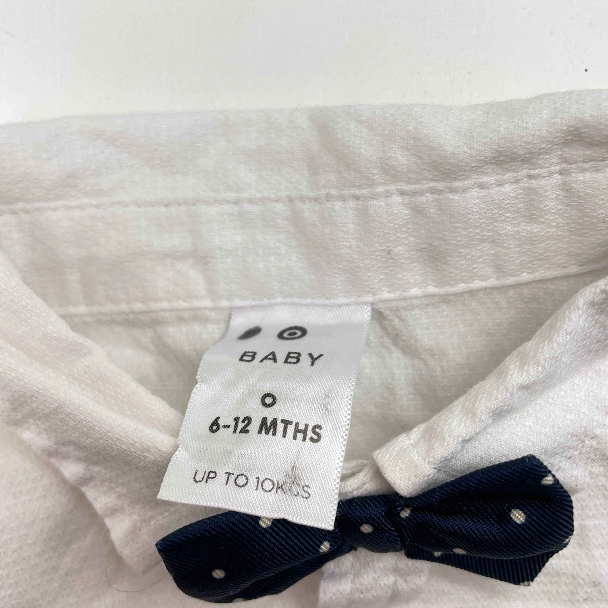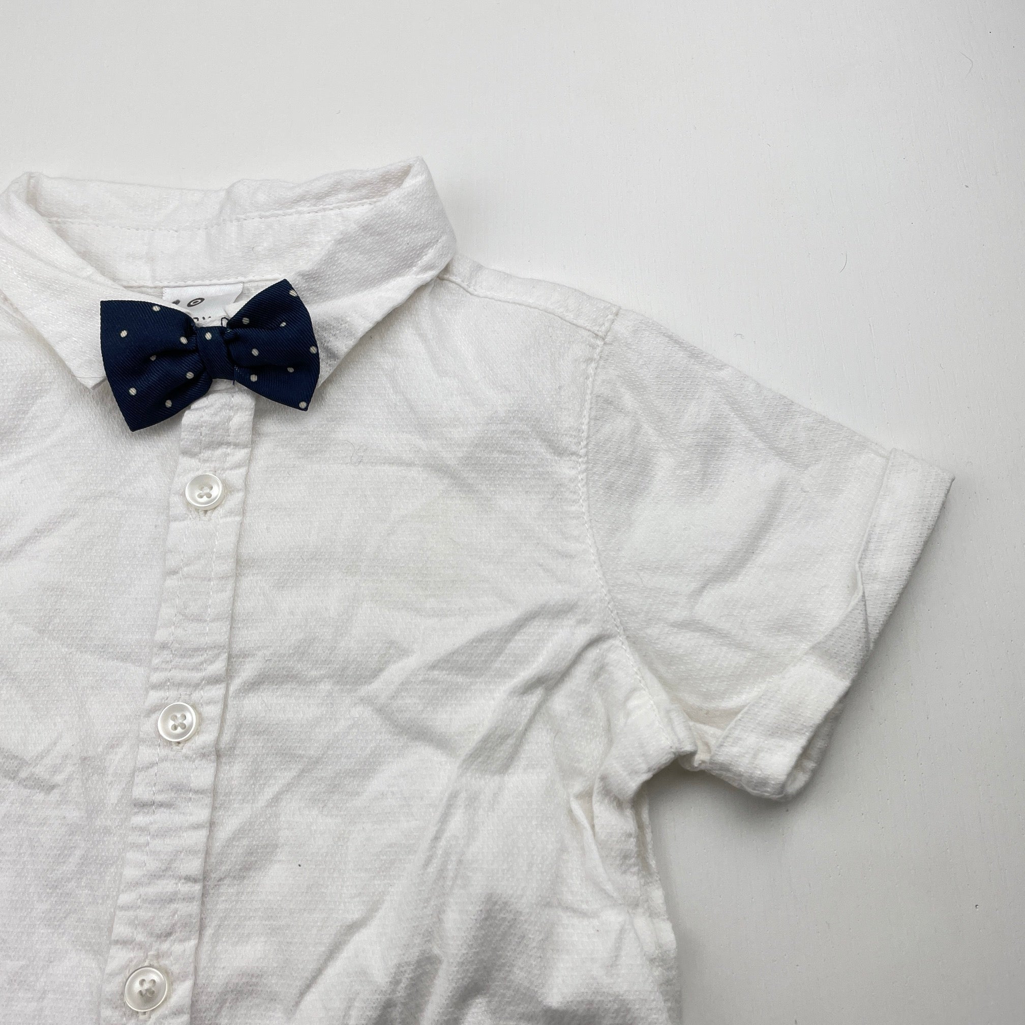 Target, white cotton short sleeve shirt, navyb bowtie attached, EUC, size 0,