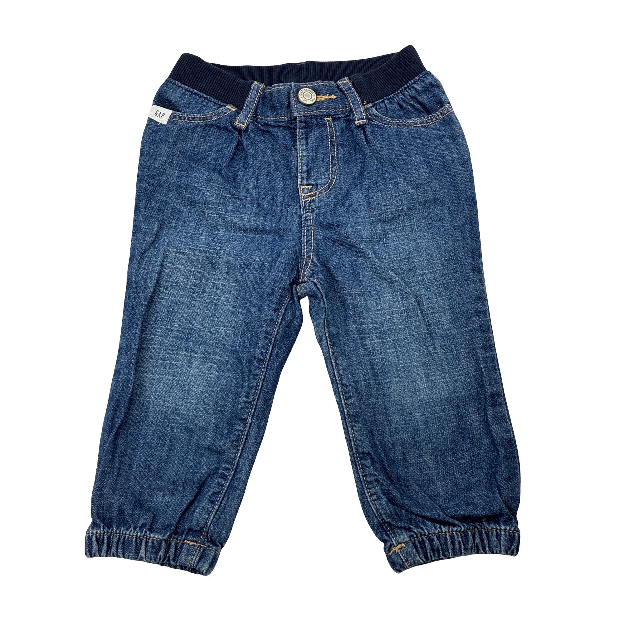 GAP, blue denim pants, elasticated, Inside leg: 22cm, GUC, size 0,
