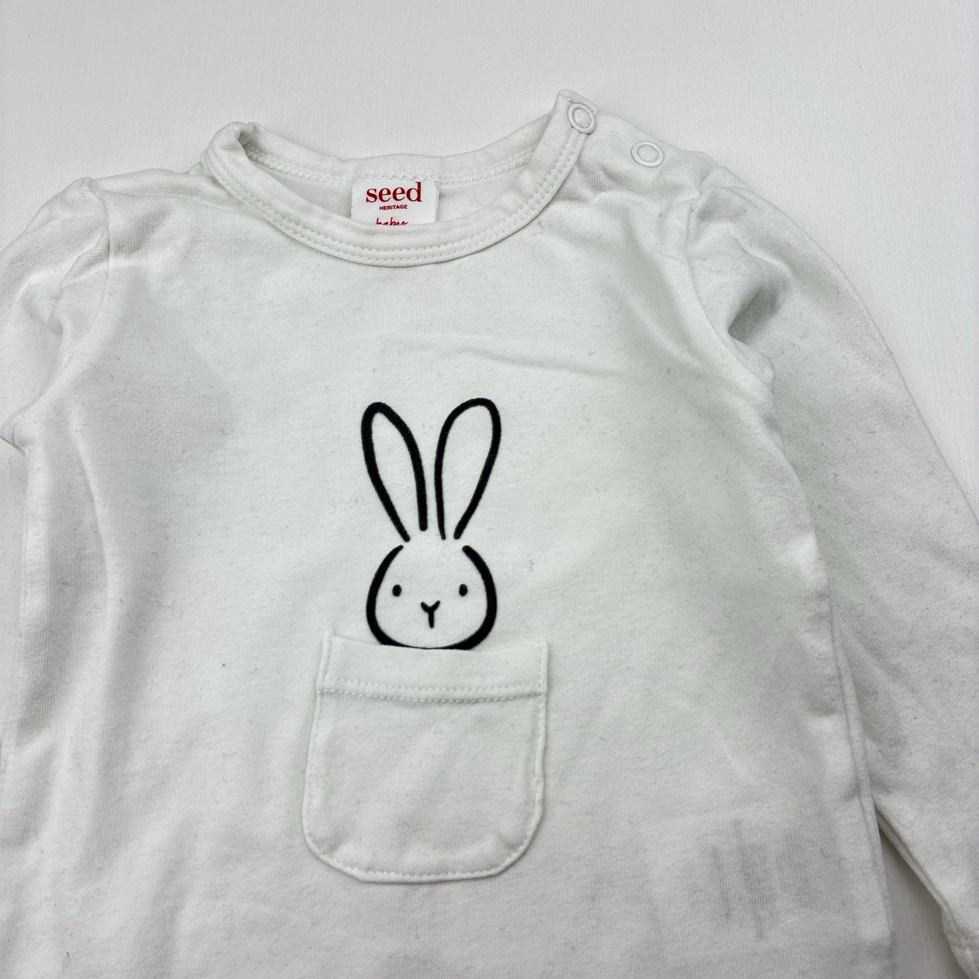 Seed, stretchy long sleeve top, rabbit, GUC, size 00,