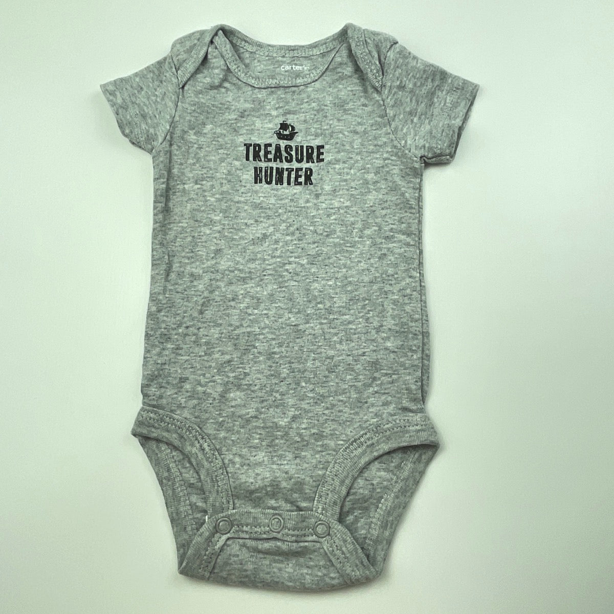 Carters, grey cotton bodysuit / romper, pirate, EUC, size 000,