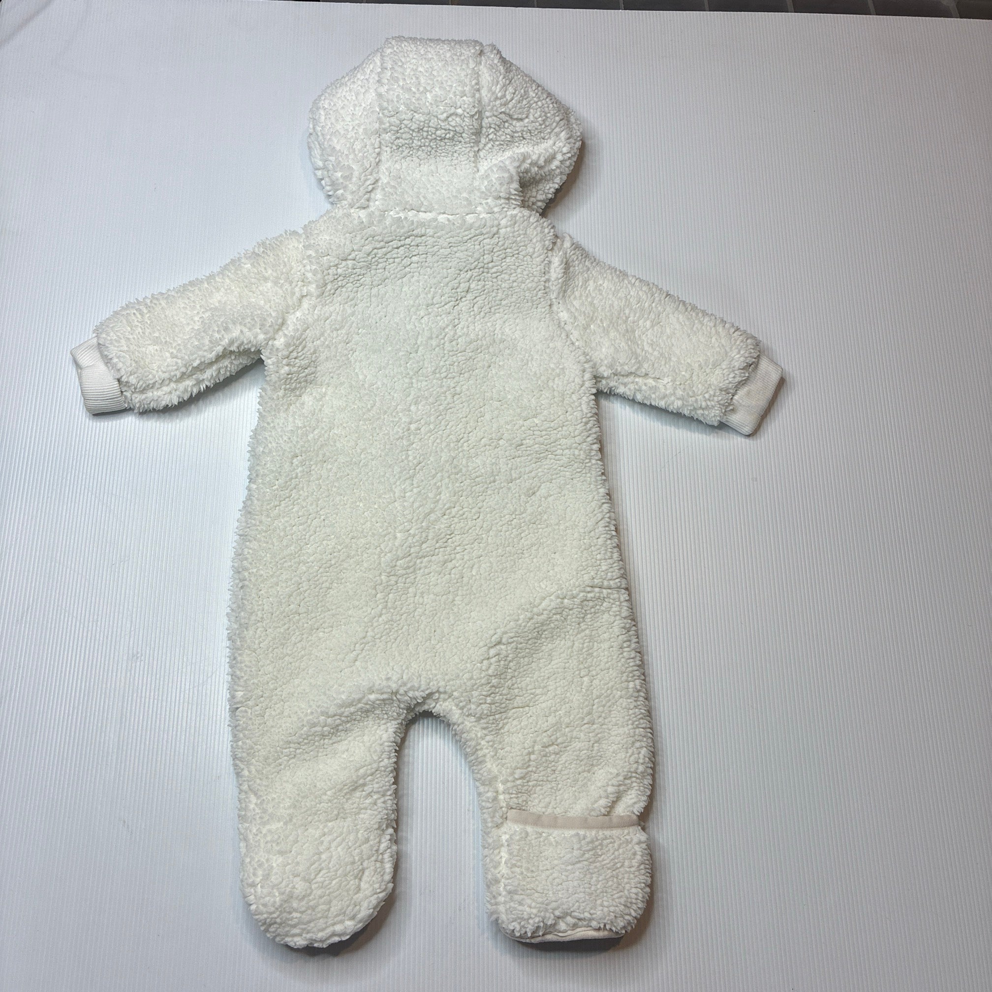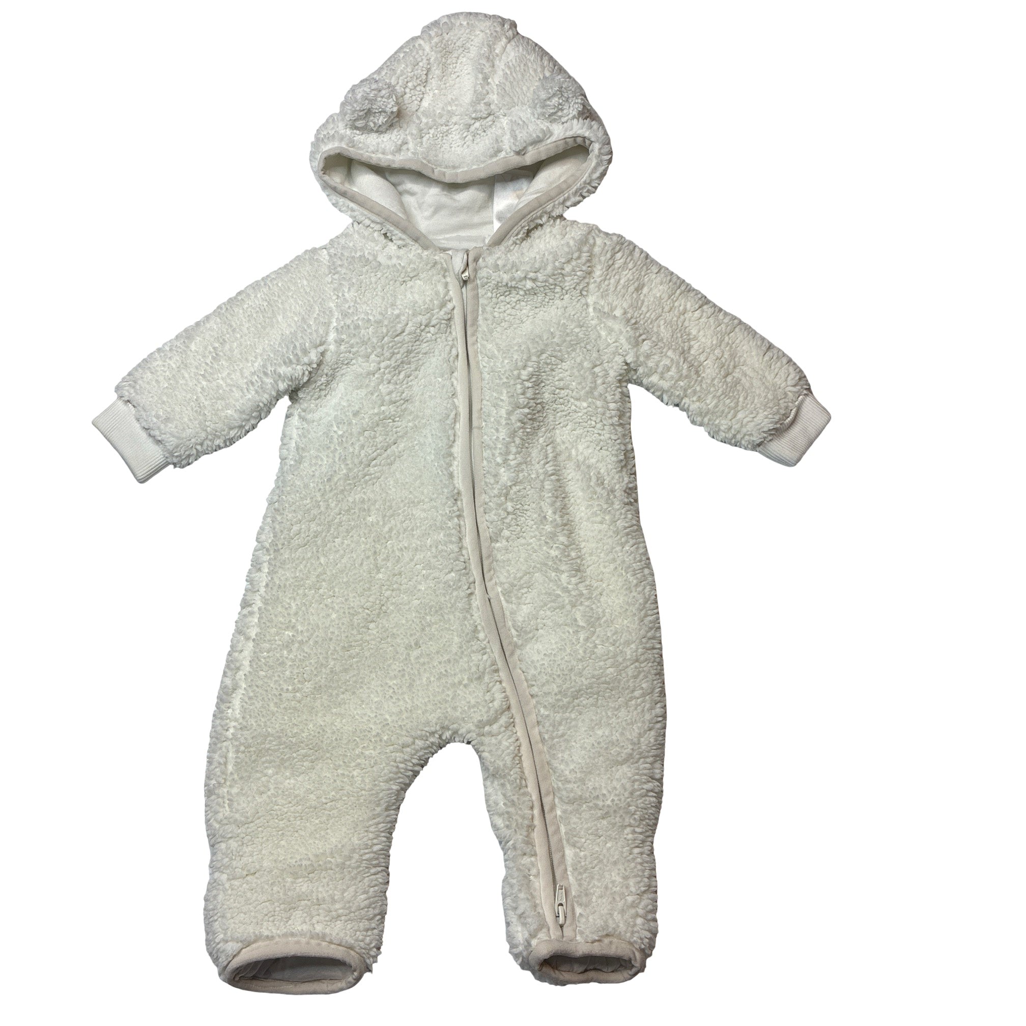 lined, fleece zip romper, marks on cuffs, FUC, size 0000-000,