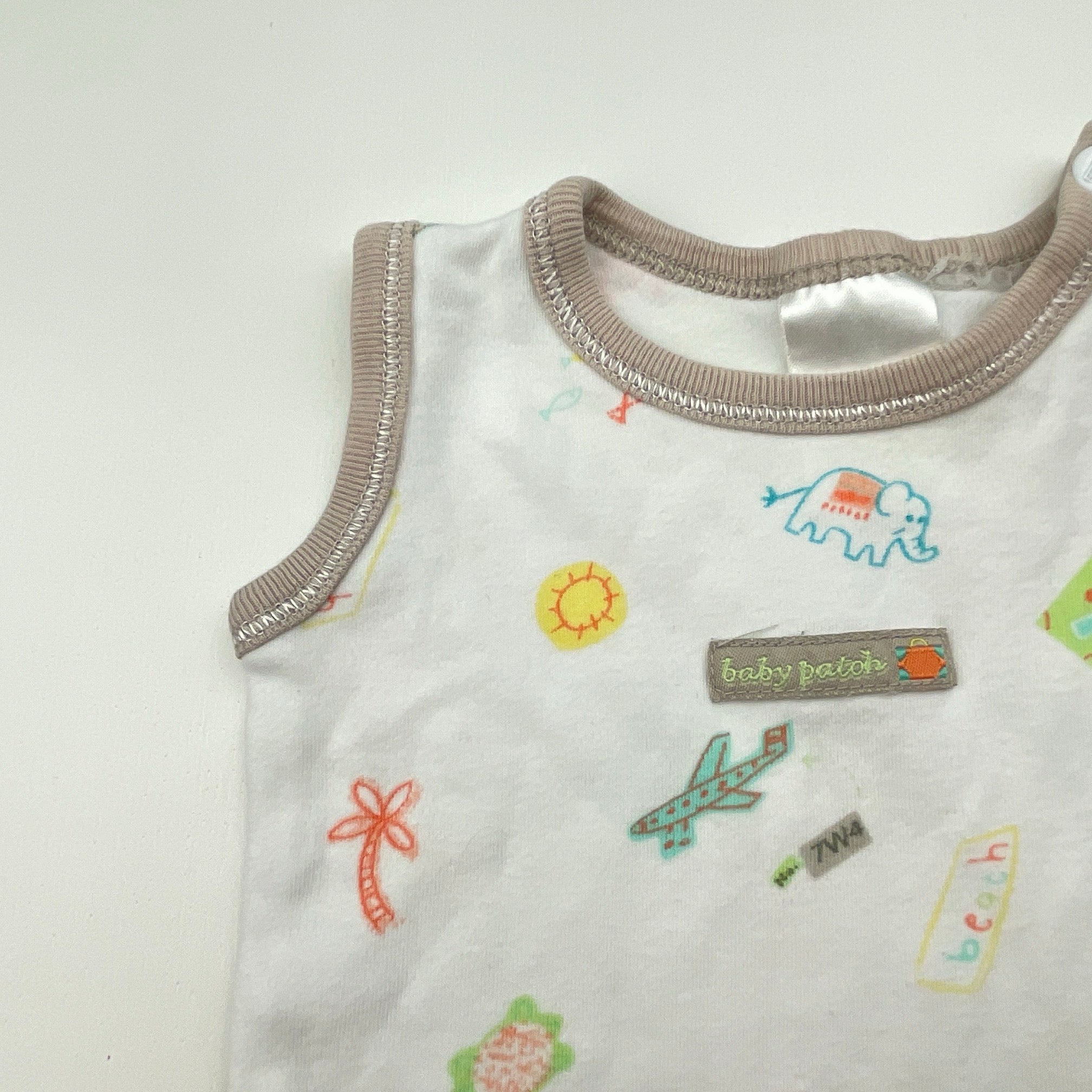 Baby Patch cotton singletsuit romper, size 0000, Pre-loved