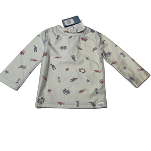 Toshi blue long sleeve rashie / swim top, seagulls, size 0, BNWT