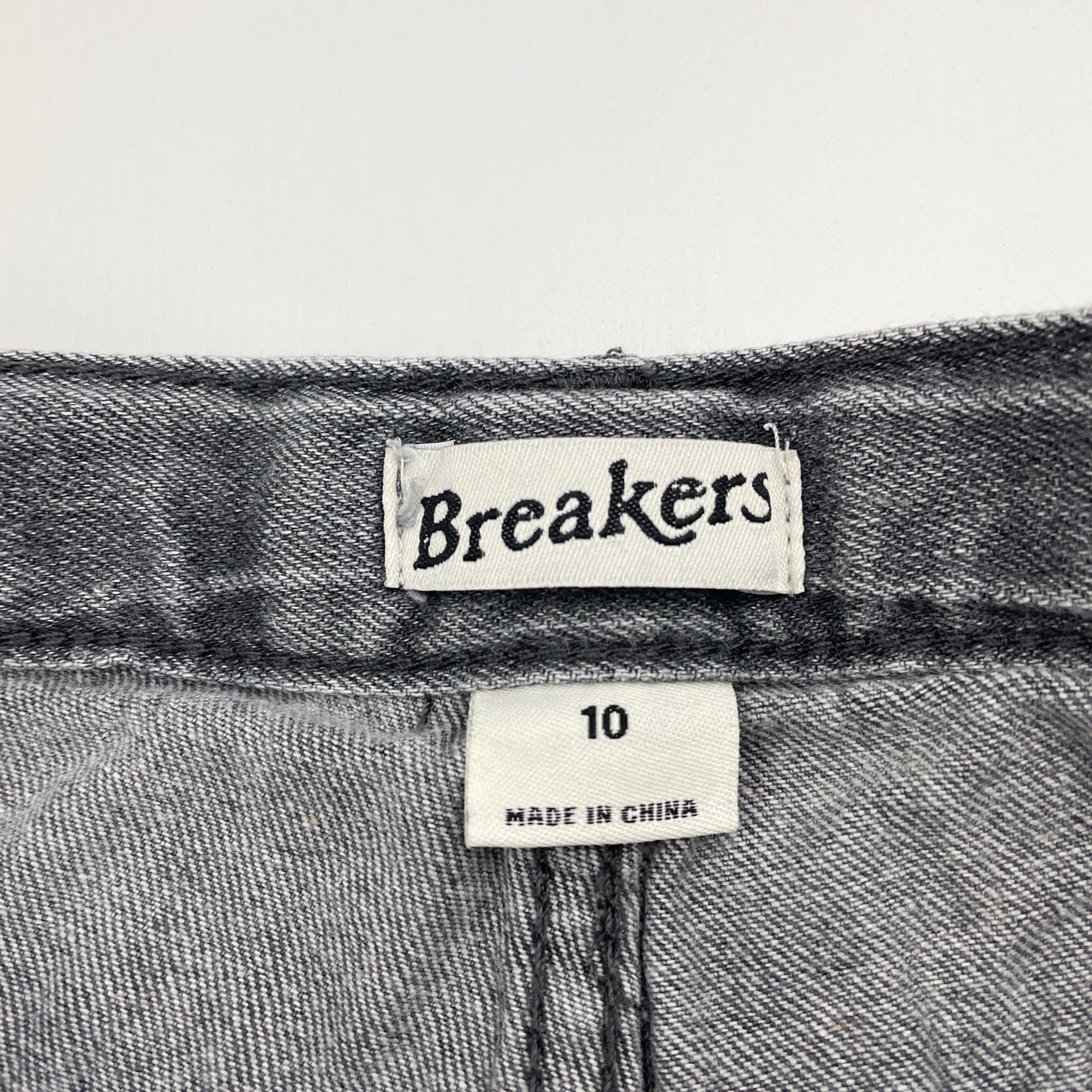 Breakers, grey denim jeans shorts, adjustable, EUC, size 10,