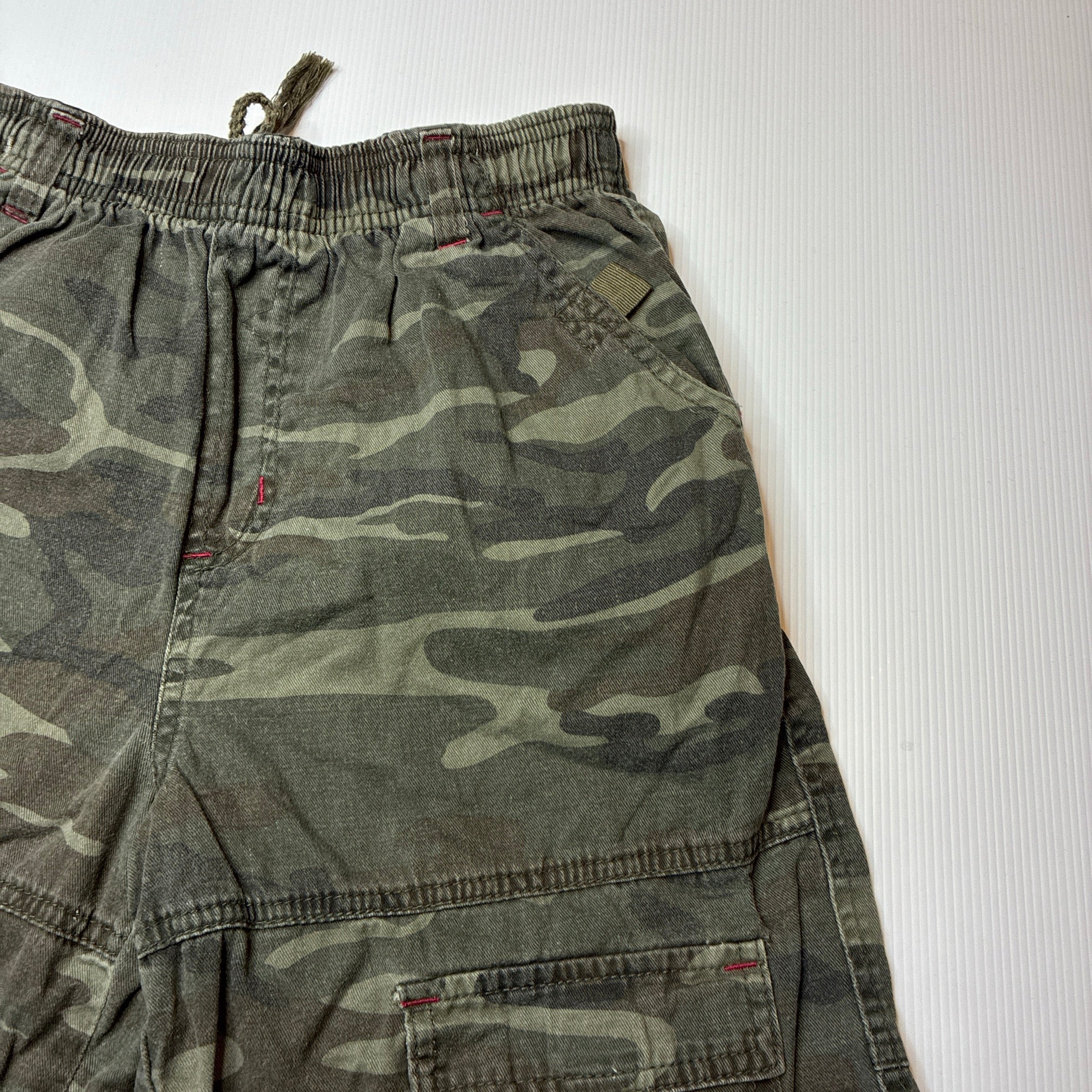Shock Resistant, cotton camo print shorts, elasticated, wash fade, FUC, size 10,
