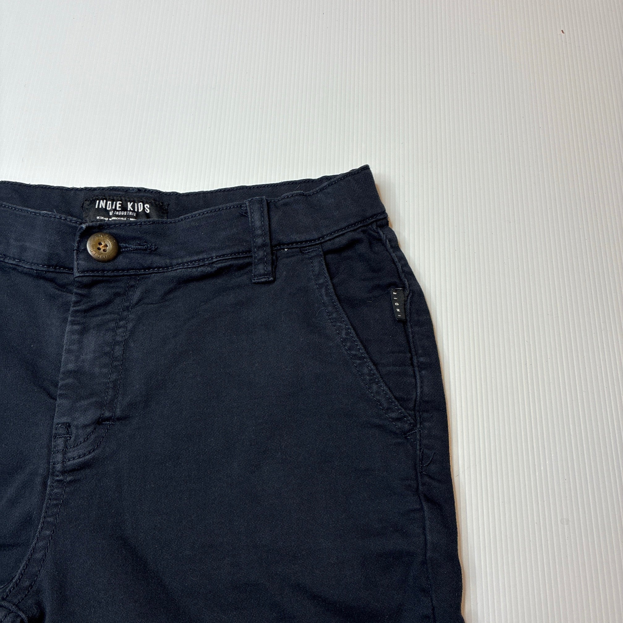 Indie, navy stretch cotton chino shorts, adjustable, GUC, size 10,