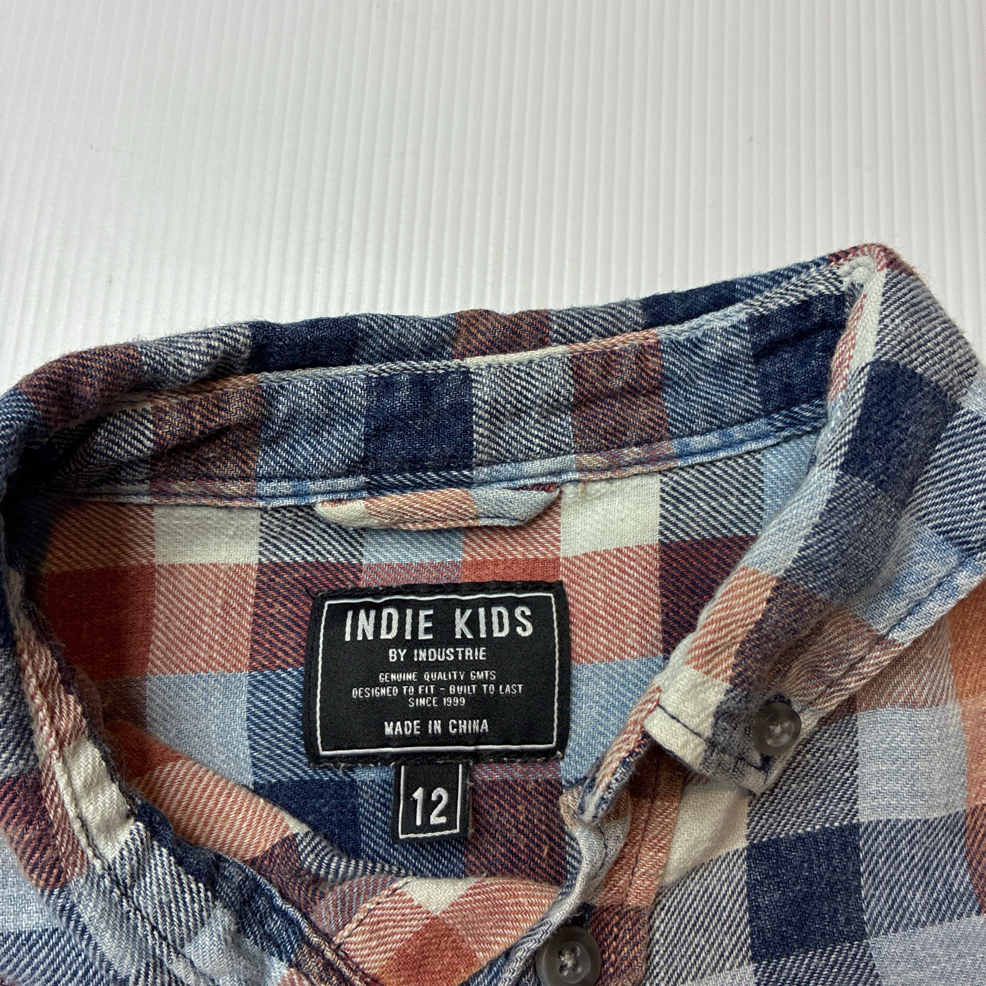 Indie, checked cotton long sleeve shirt, GUC, size 12,
