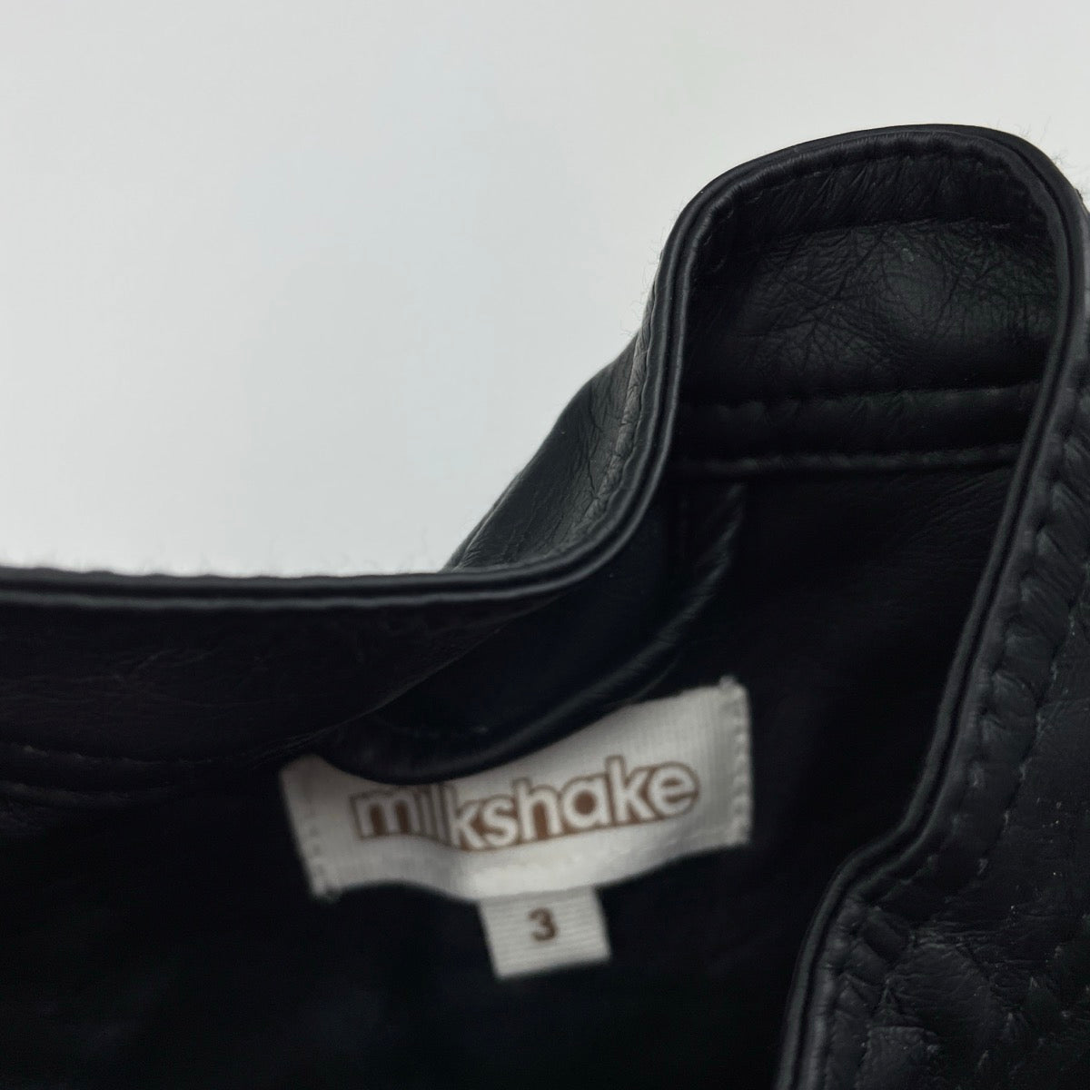 Milkshake, black faux leather jacket, shoudler to cuff: 33cm, EUC, size 3,