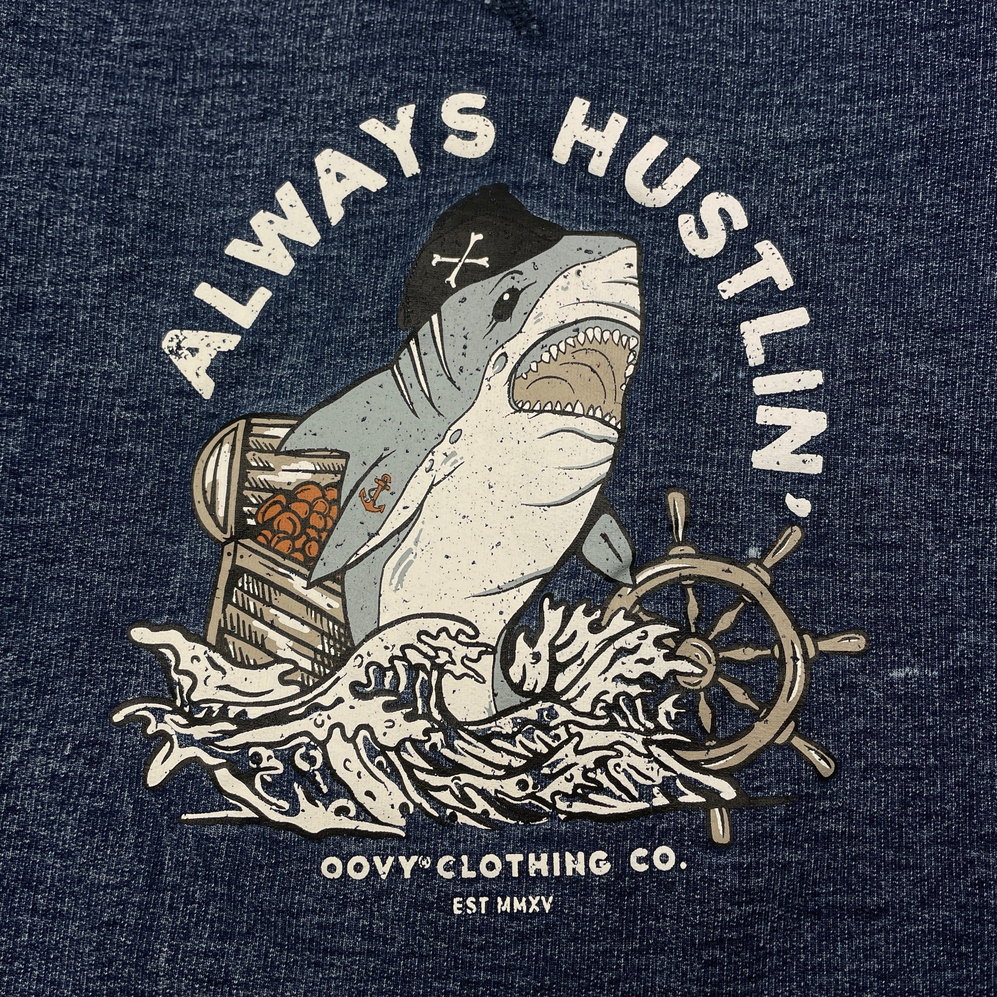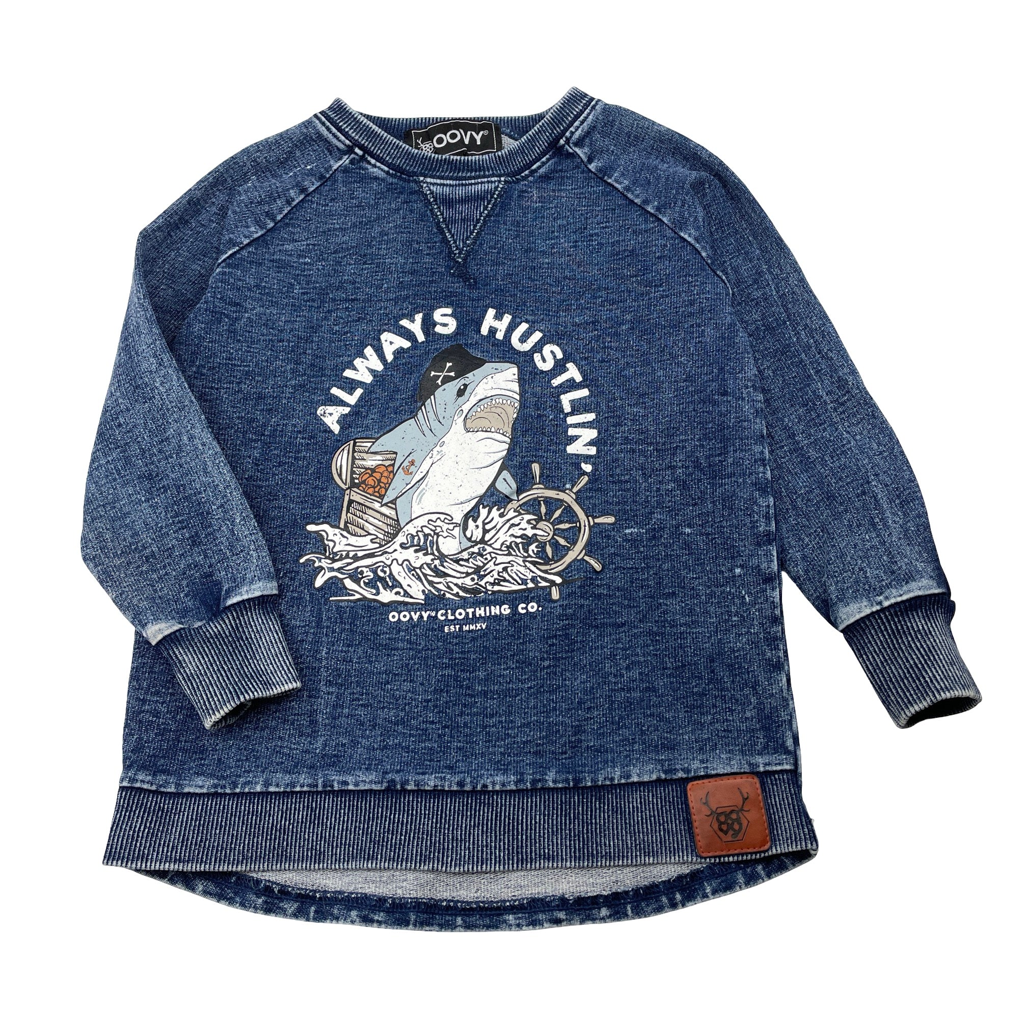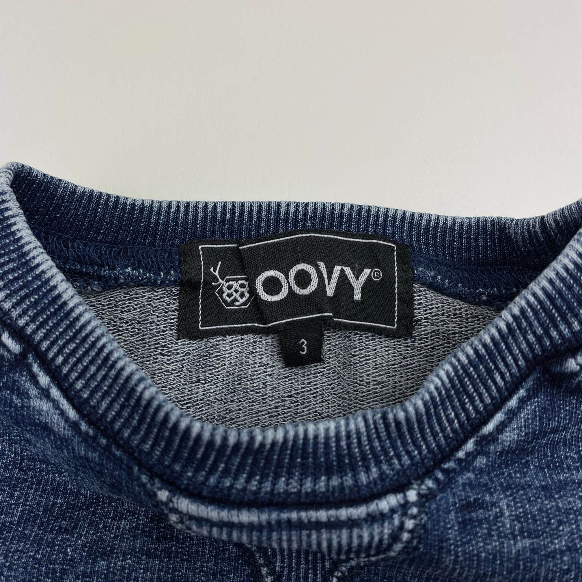 Boys OOVY, knit denim long sleeve top, shark, light wear on cuffs, FUC, size 3,