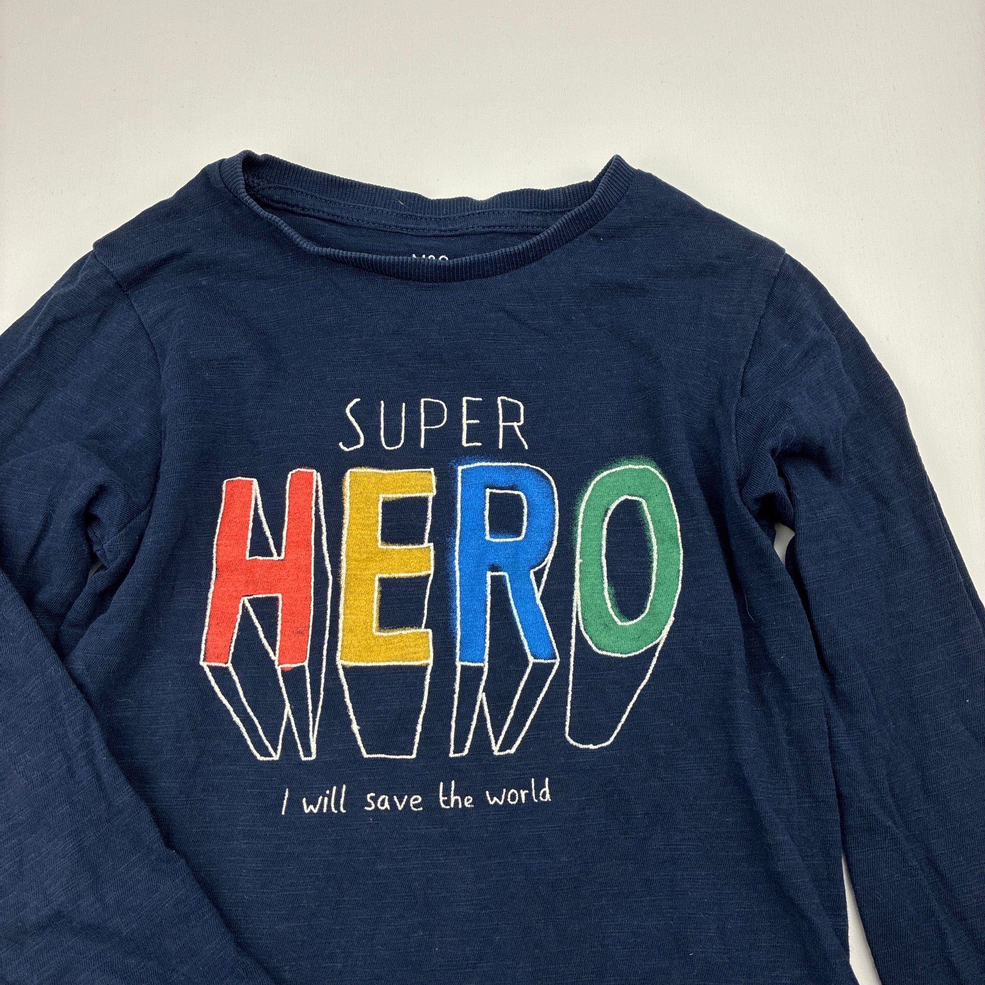 M&S, navy cotton long sleeve tee / top, GUC, size 2-3,