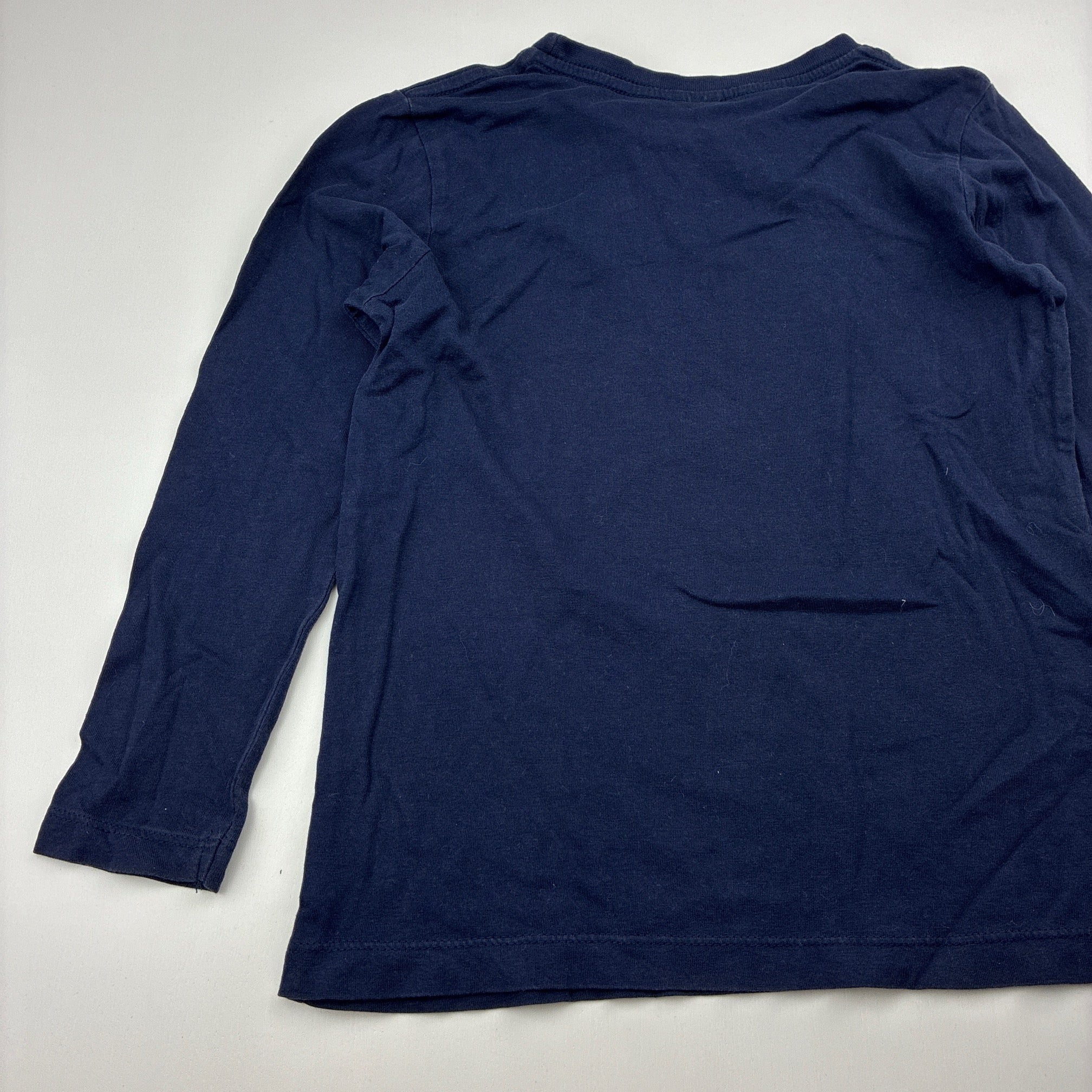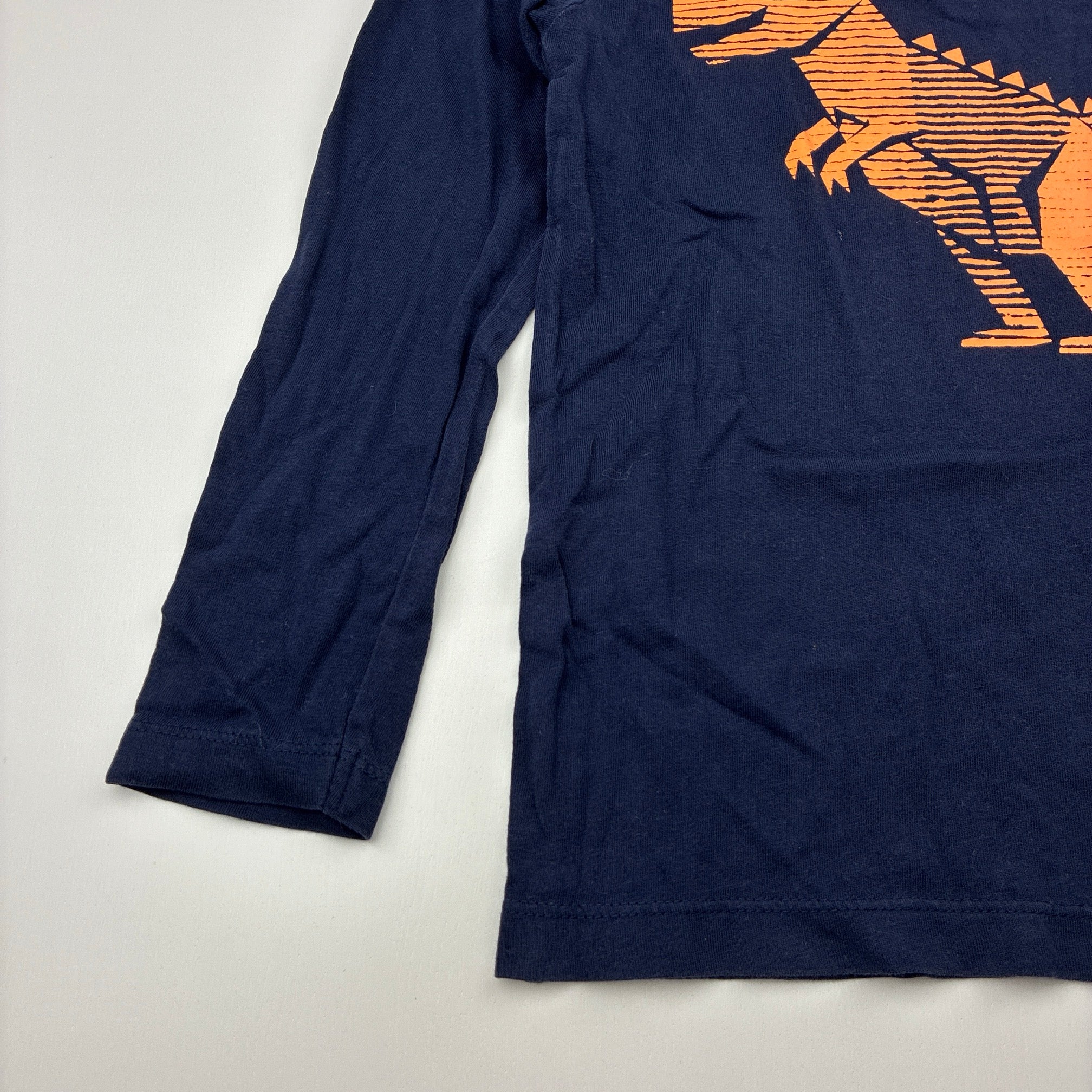 navy, cotton long sleeve top, dinosaur, no size, armpit to armpit: 33cm, shoulder to cuff: 39.5cm, GUC, size 5-6,