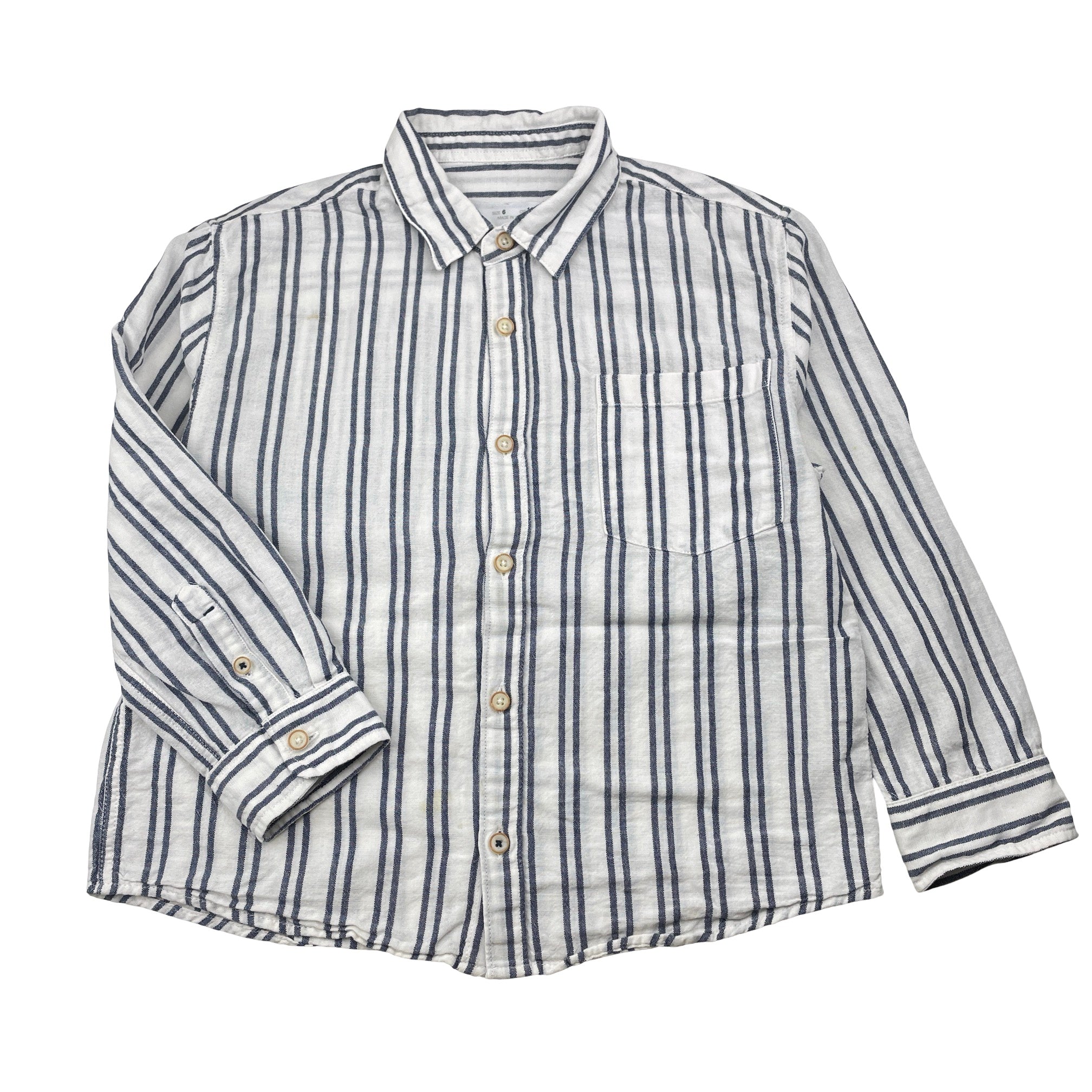Zara, cotton/linen long sleeve shirt, light mark lower front, FUC, size 6,