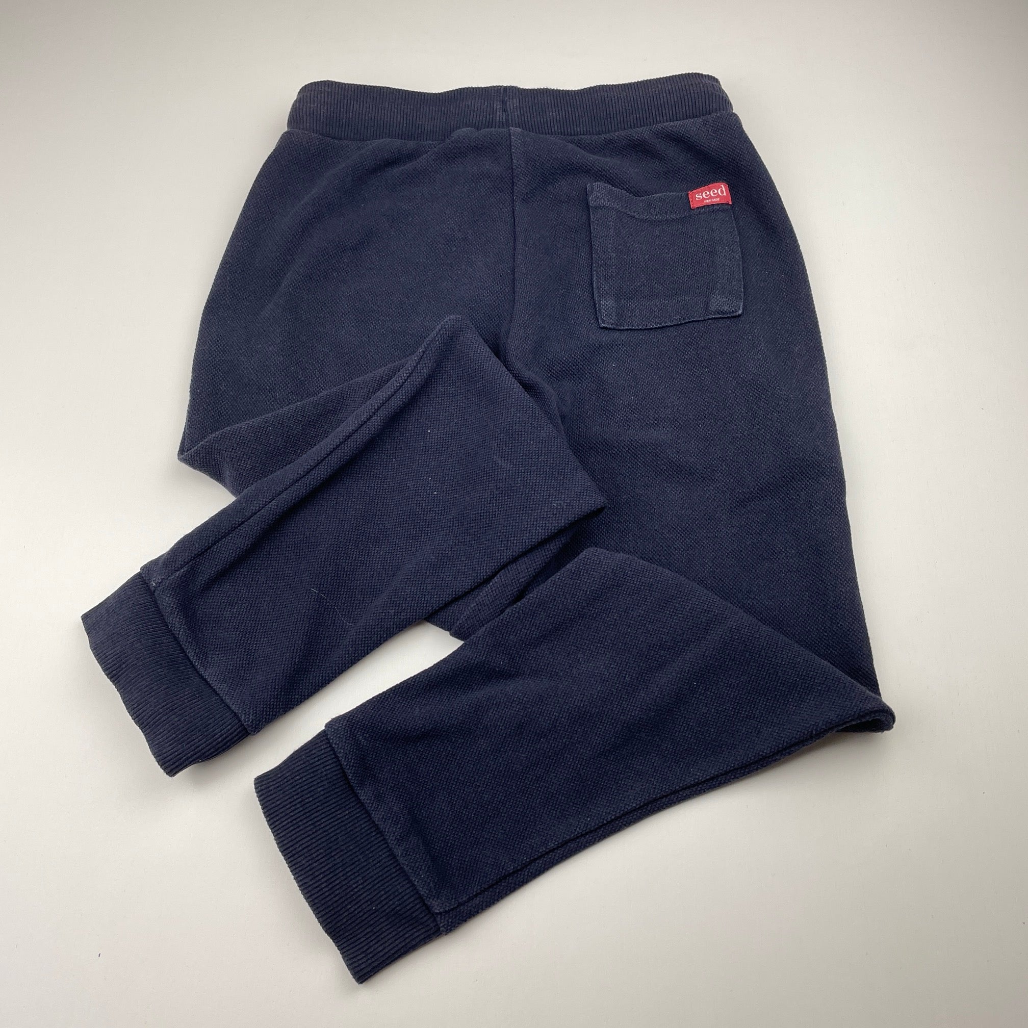 Seed, navy track pants, elasticated, inside leg: 48cm (wash fade), FUC, size 6,