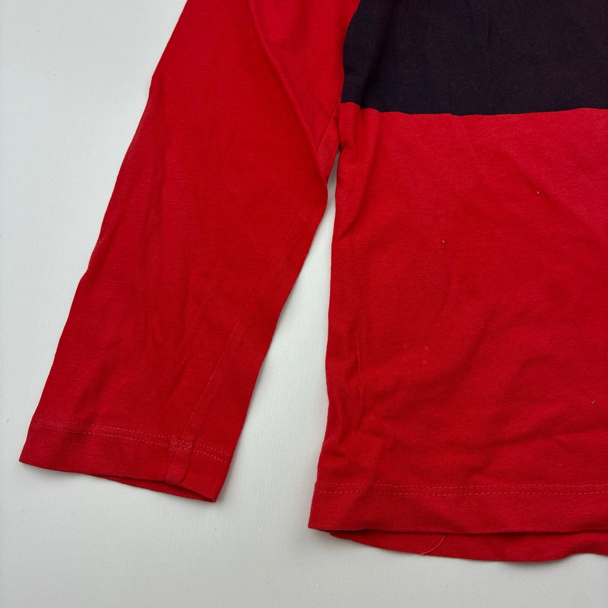 red, cotton long sleeve tee / top, no size, armpit to armpit: 35cm, shoulder to cuff: 41cm, GUC, size 6,