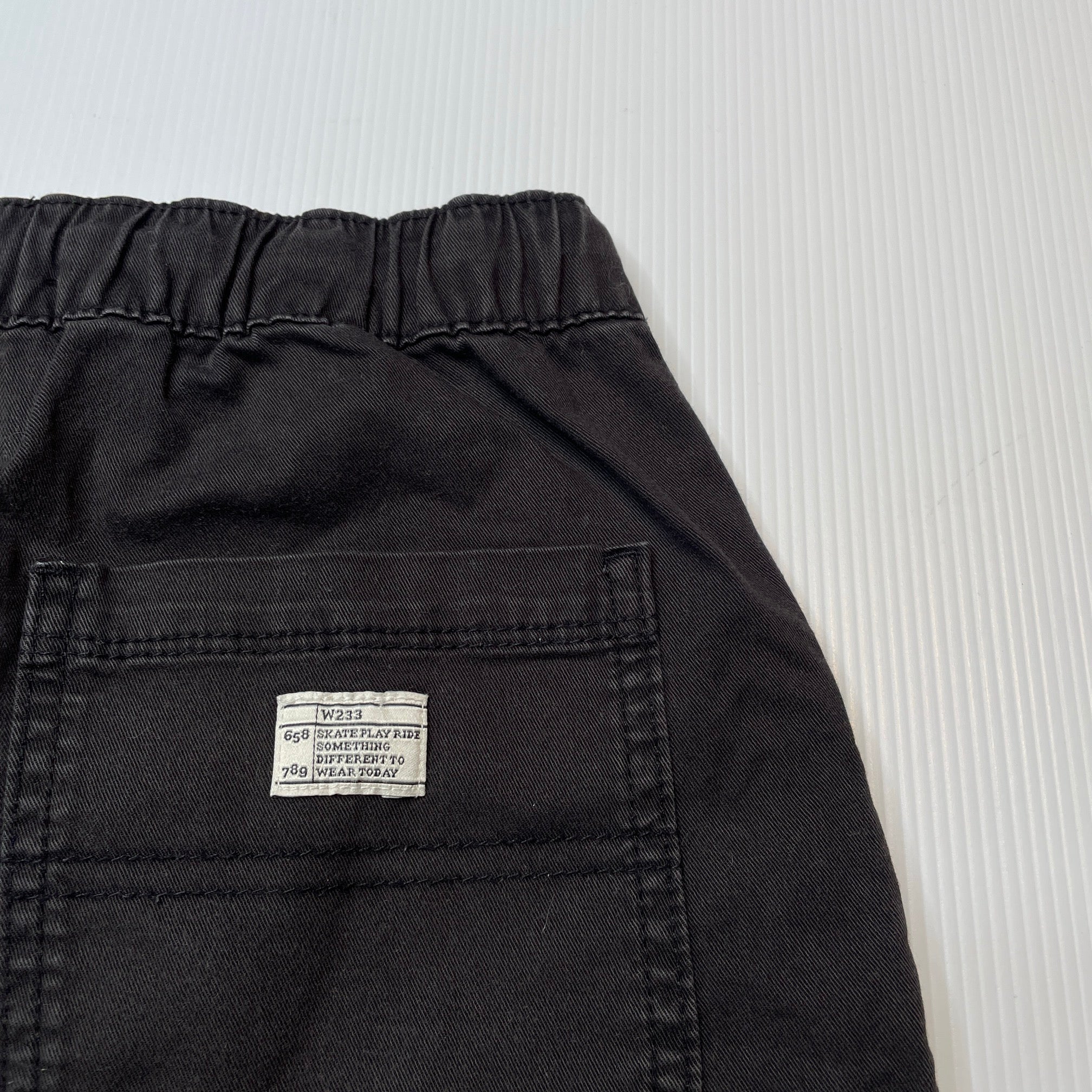 Zara, black stretch cotton shorts, elasticated, GUC, size 7,