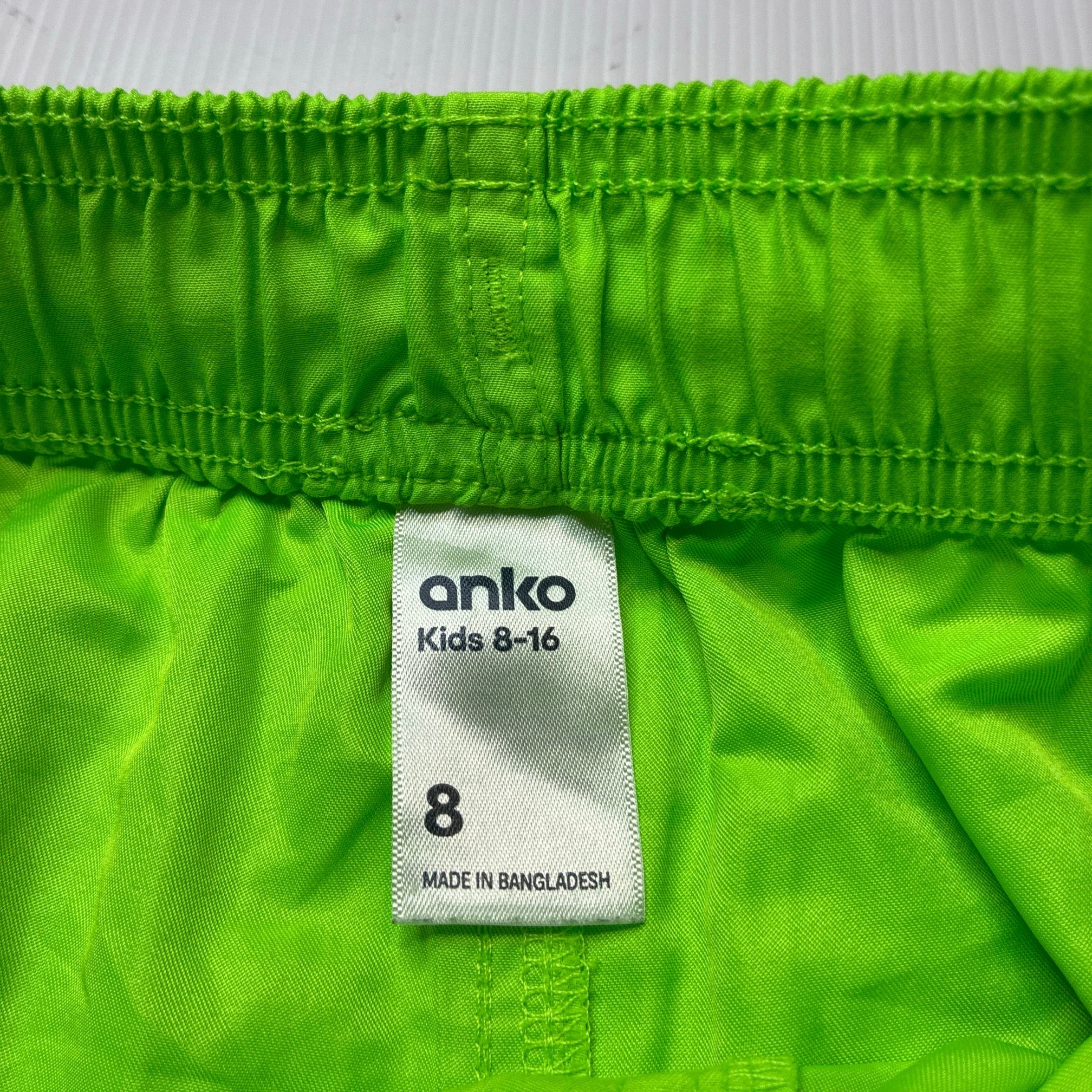 Anko, neon green board shorts, elasticated, EUC, size 8,