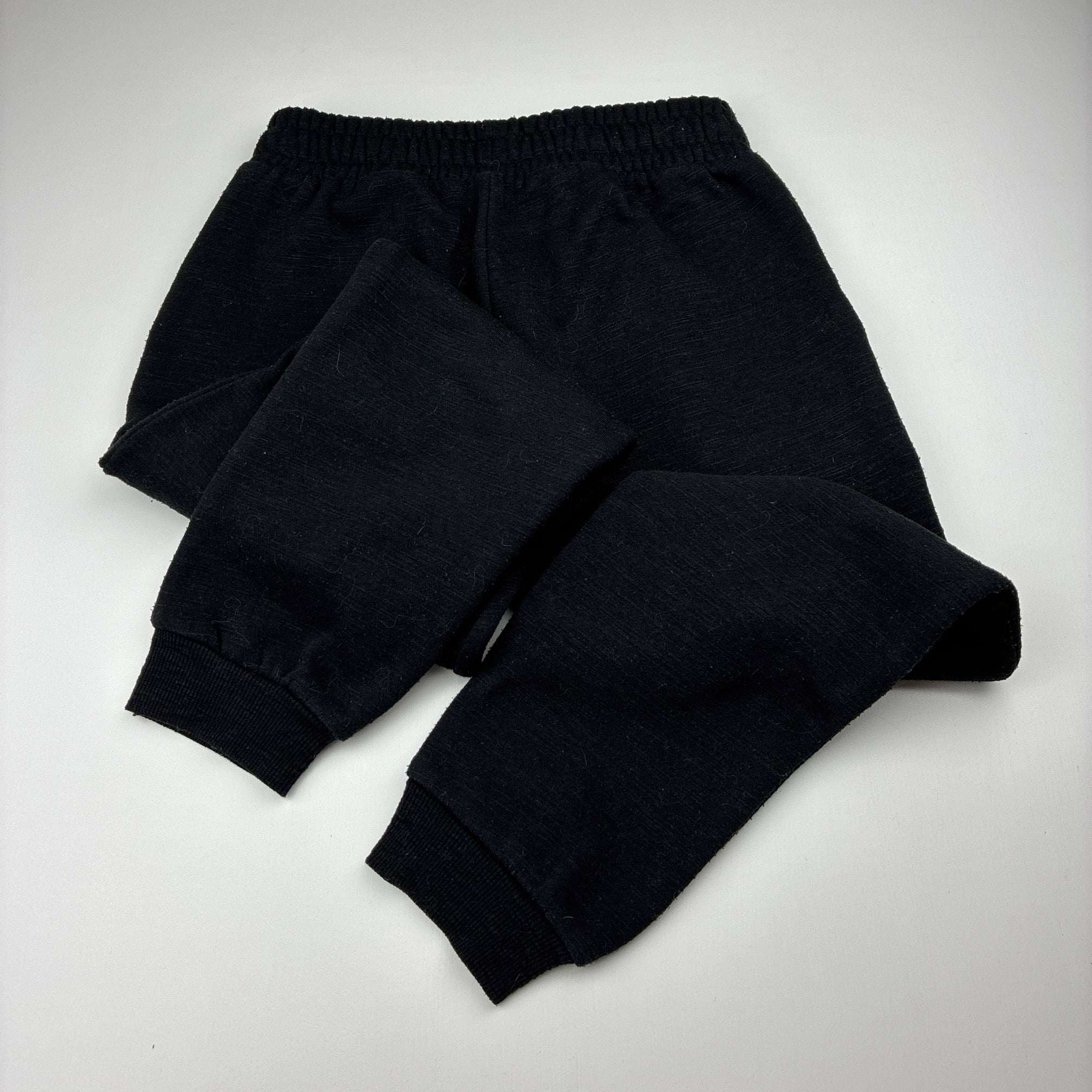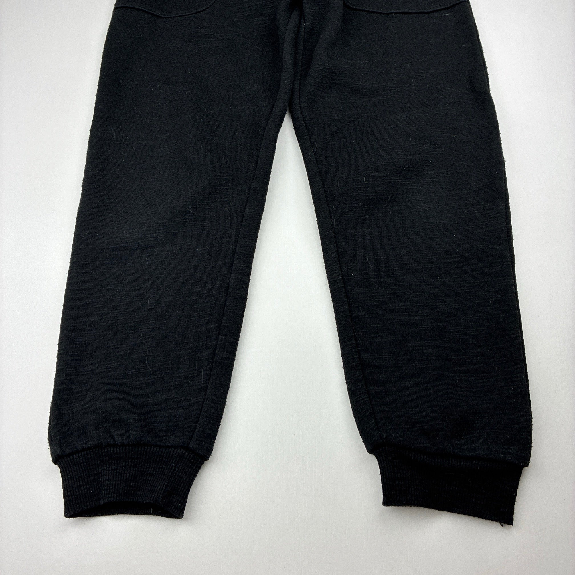 KID, black fleece lined track pants, Inside leg: 54cm, FUC, size 8,