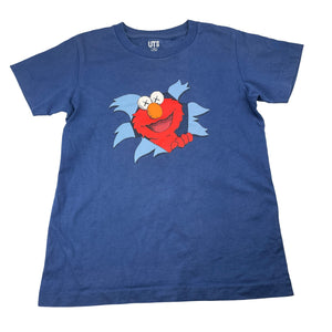 Uniqlo Seasame Street Elmo cotton tee / top, wash fade, size 7-8, Pre-loved