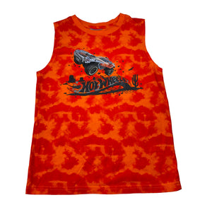 Hot Wheels tie dyed cotton singlet / tank top, no size, armpit to armpit: 34cm, size 7-8, Pre-loved