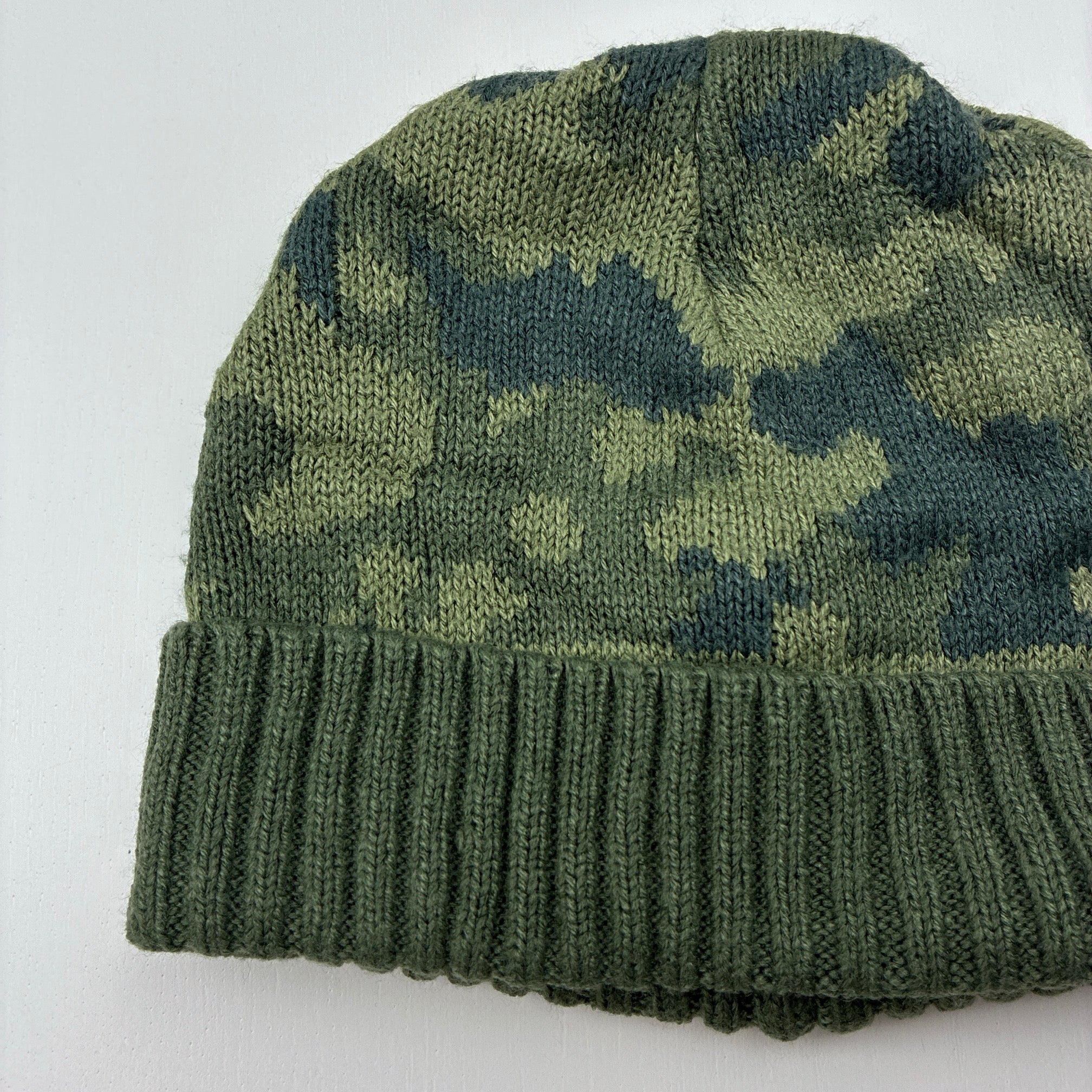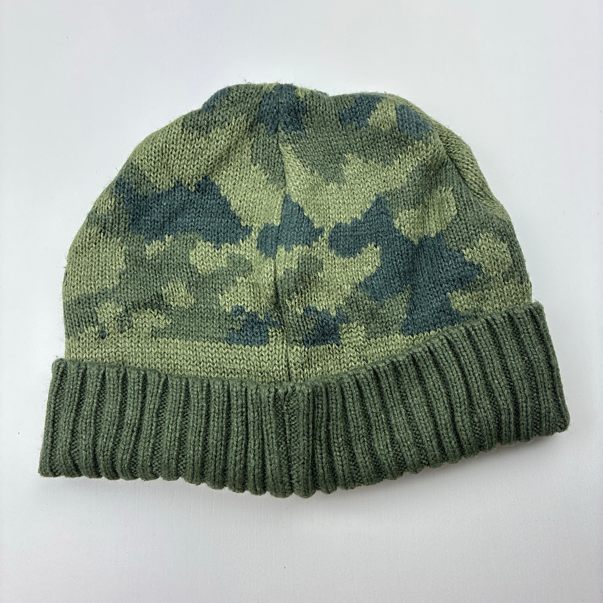 Anko, khaki camo print knit hat / beanie, EUC, size 7-10,
