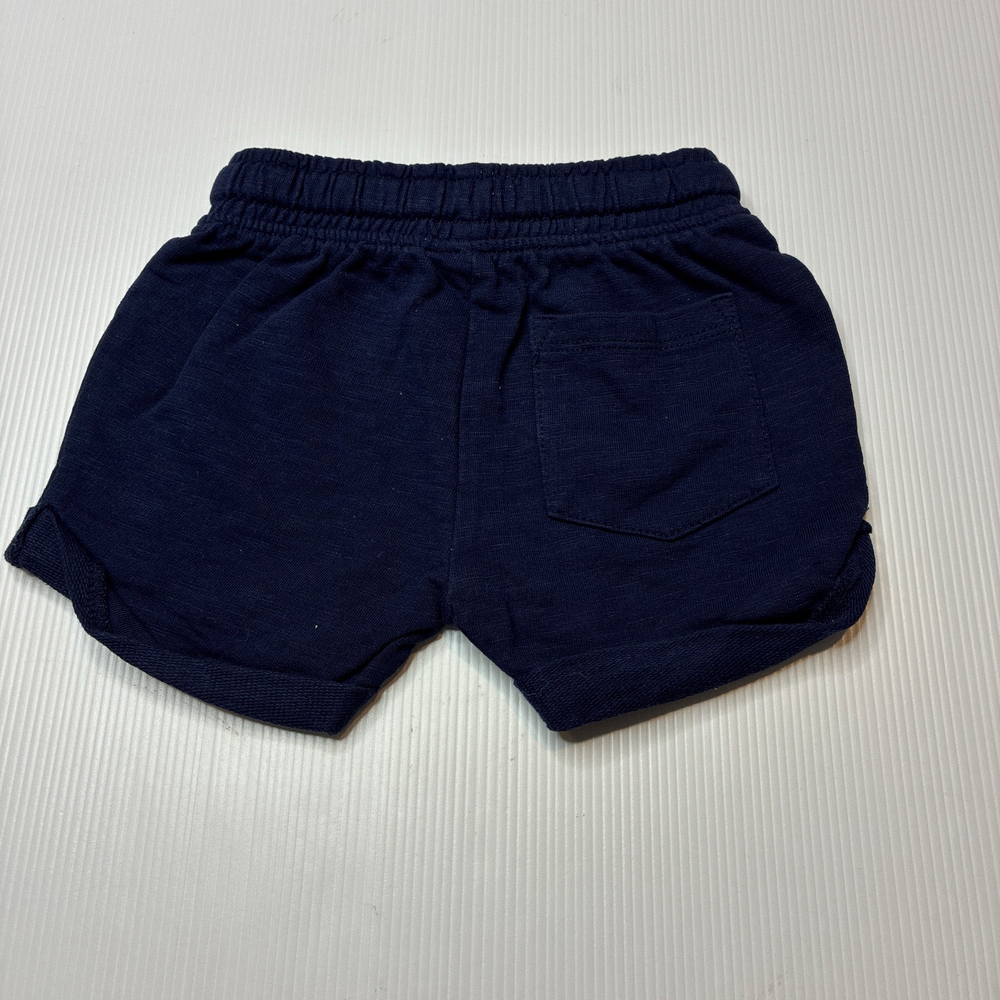 Dymples, navy organic cotton shorts, elasticated, EUC, size 00,