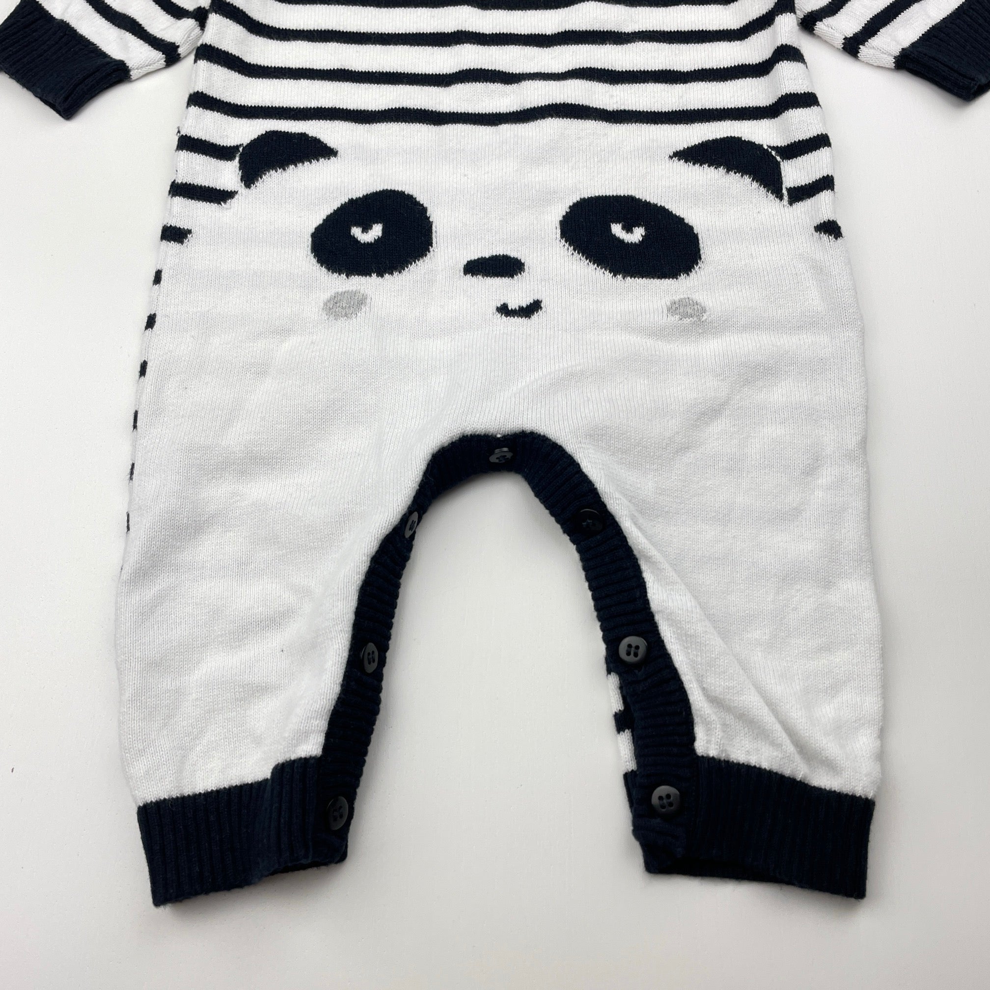 Dymples, knitted cotton romper, panda, EUC, size 00,