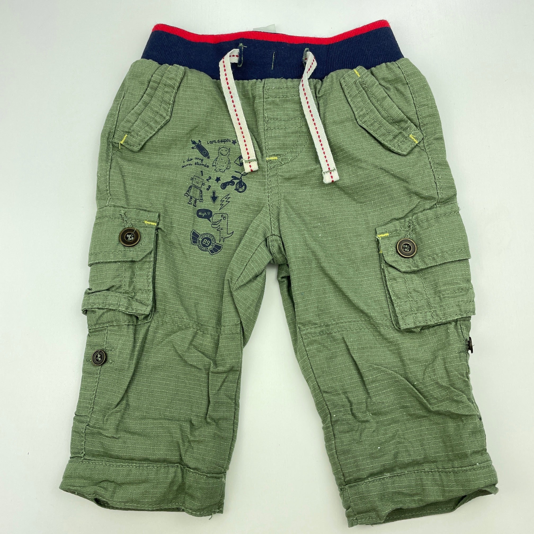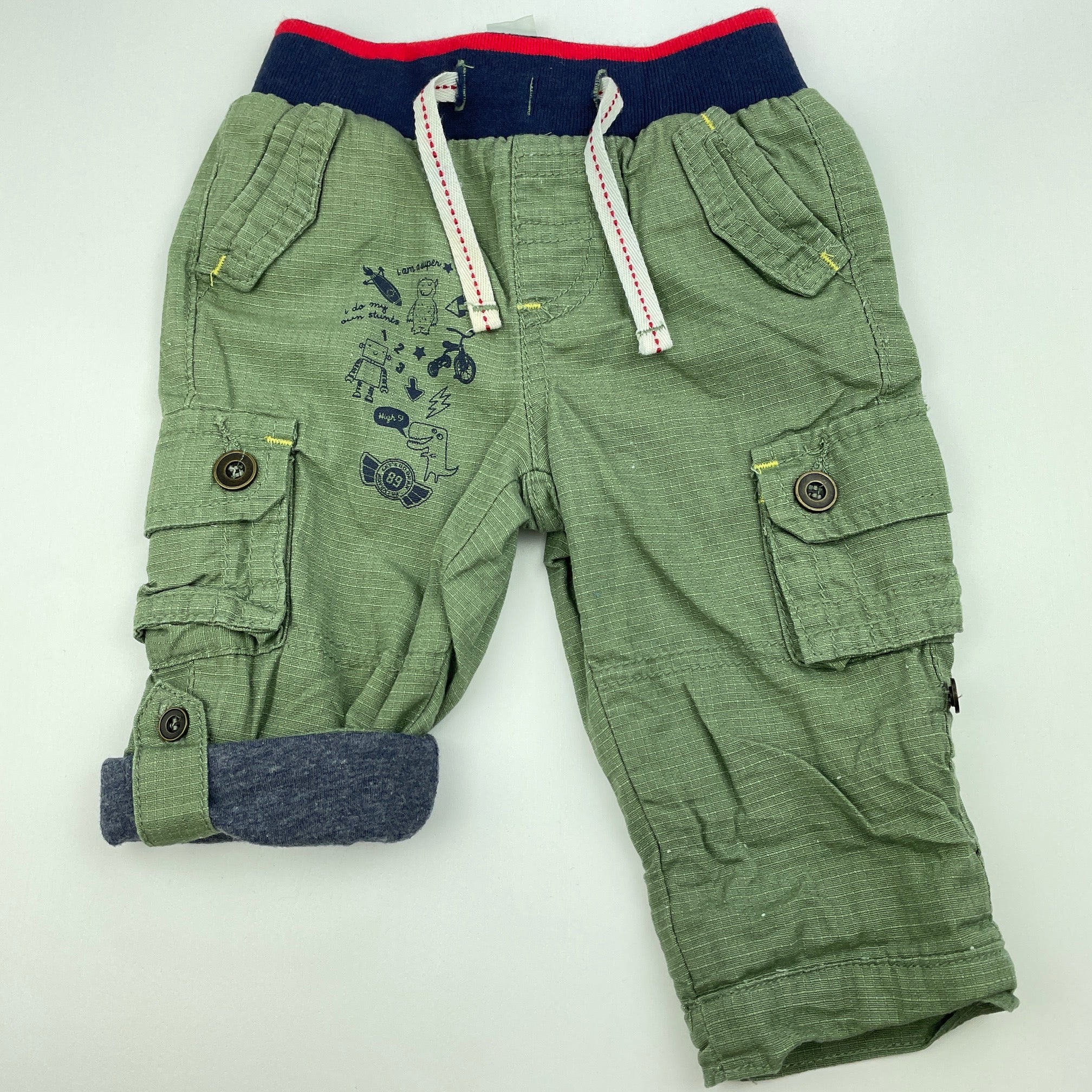 Dymples, lined cotton cargo pants, elasticated, EUC, size 00,