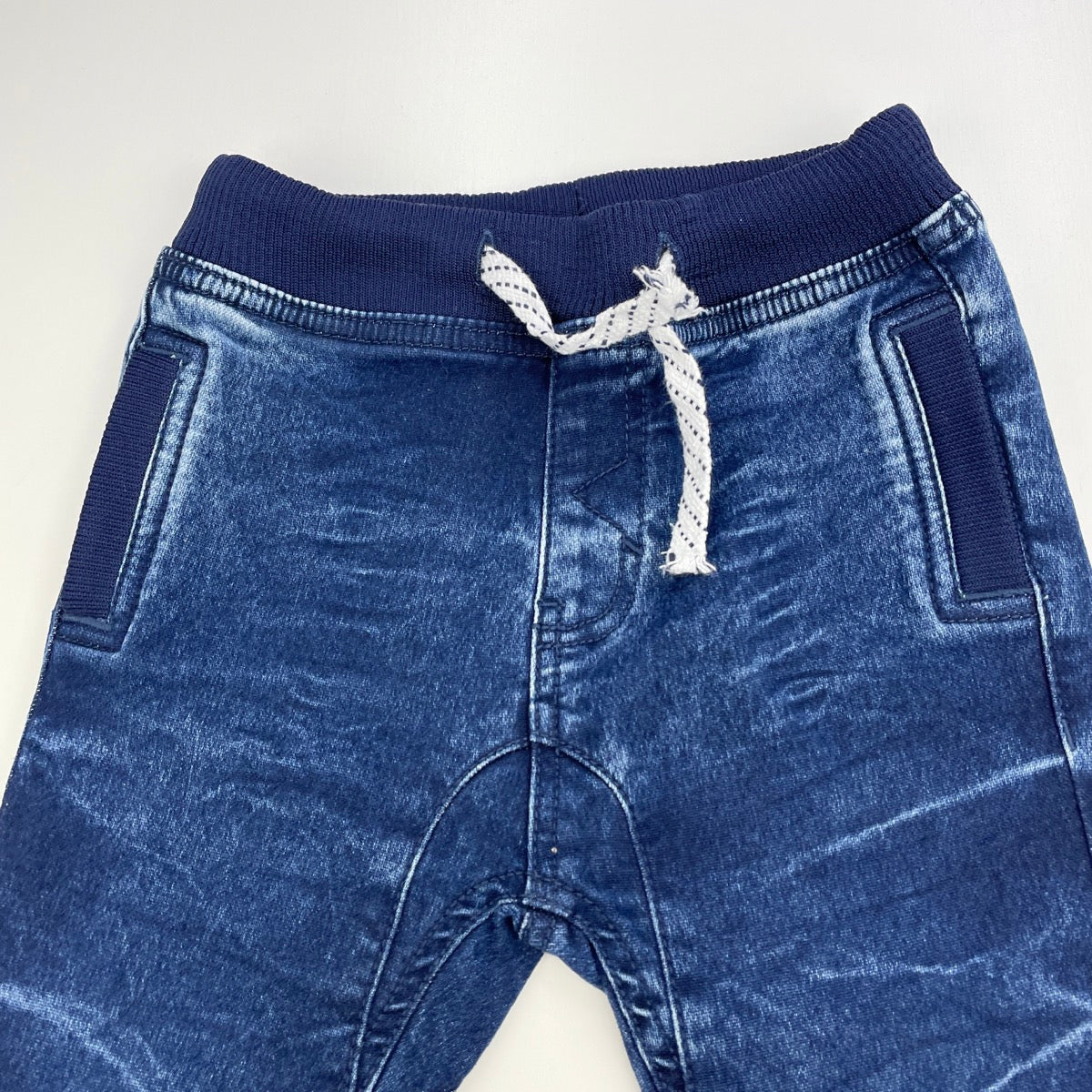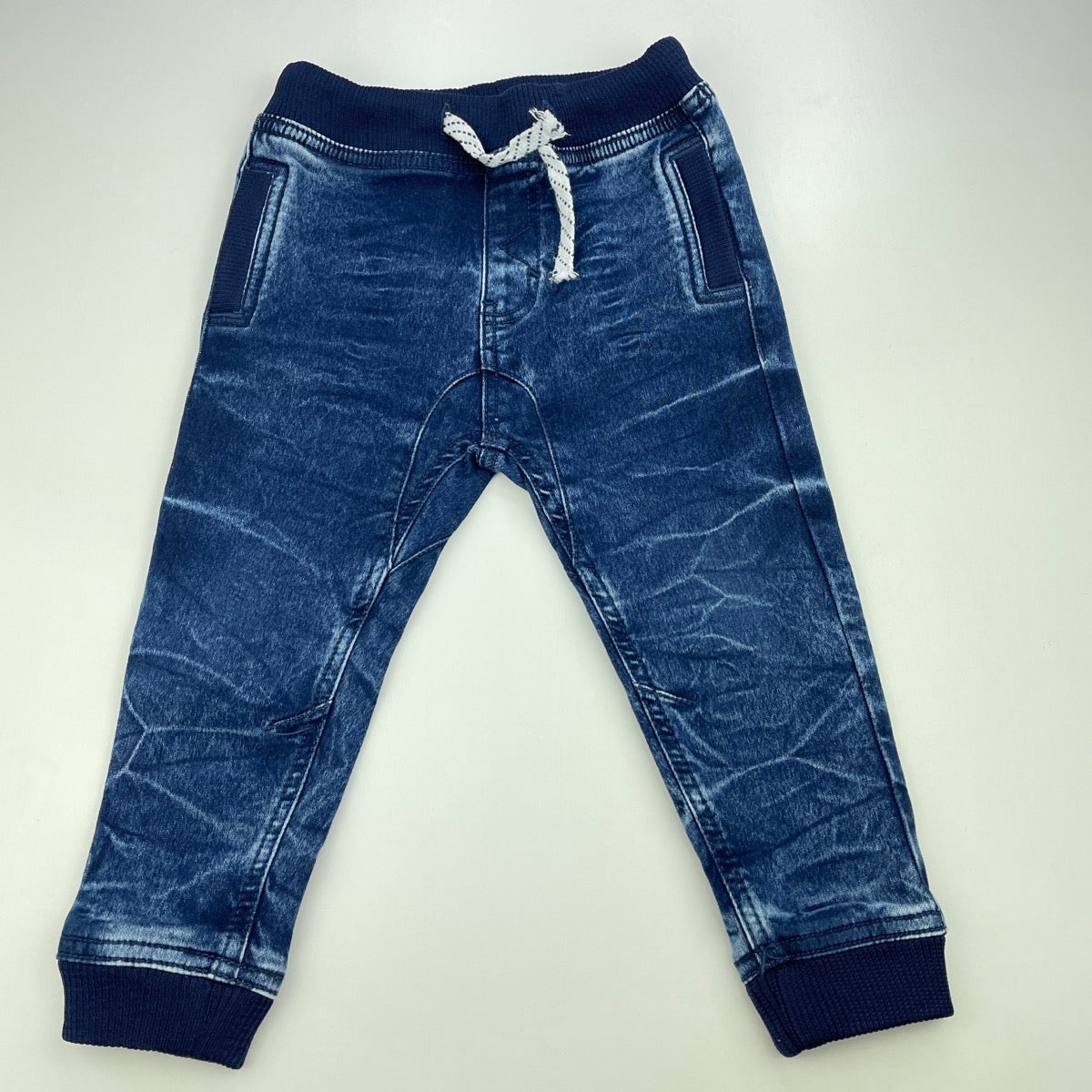 Boys Dymples, blue stretch denim pants, elasticated, Inside leg: 30cm, EUC, size 2,