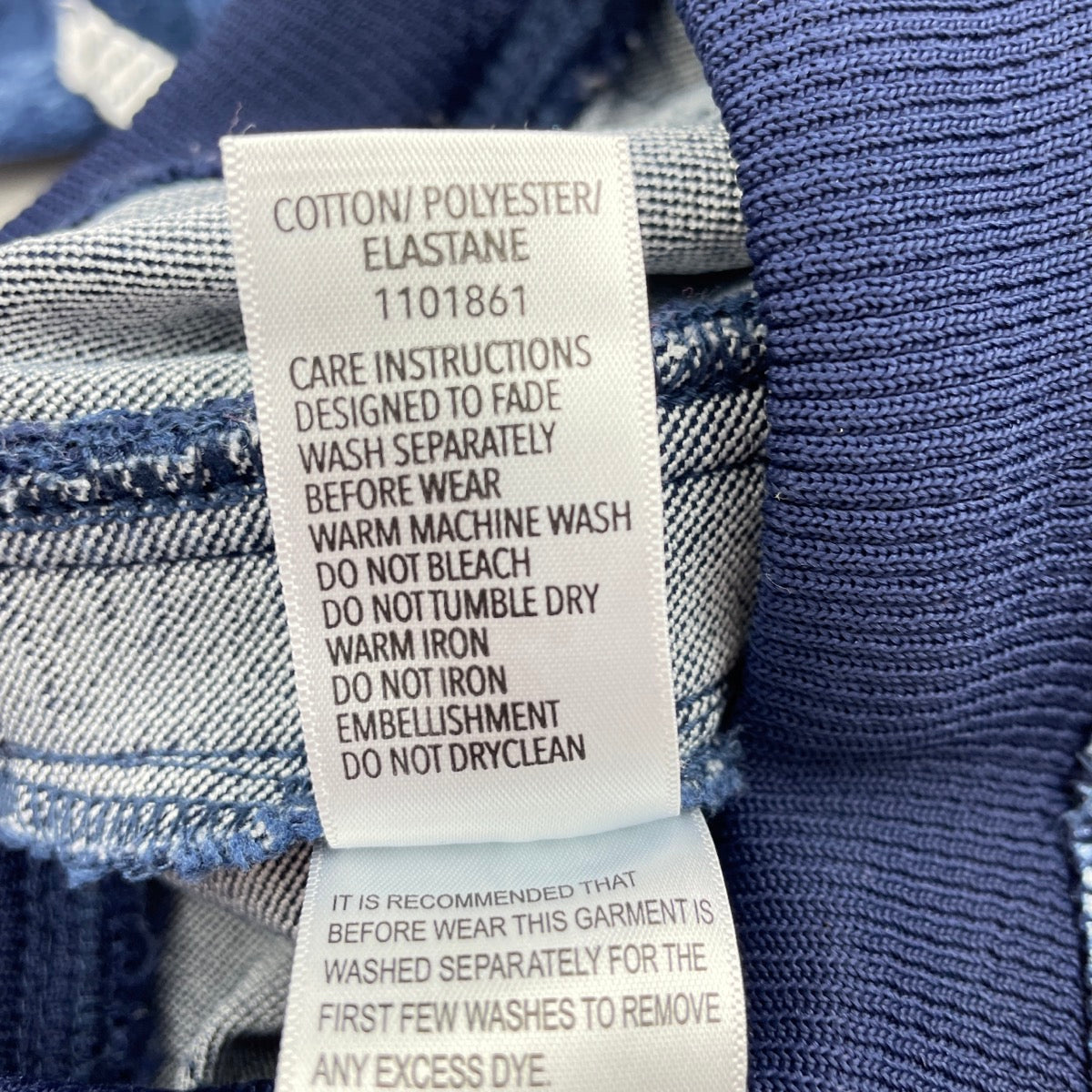 Dymples blue stretch denim pants, elasticated, Inside leg: 30cm, size 2, Pre-loved