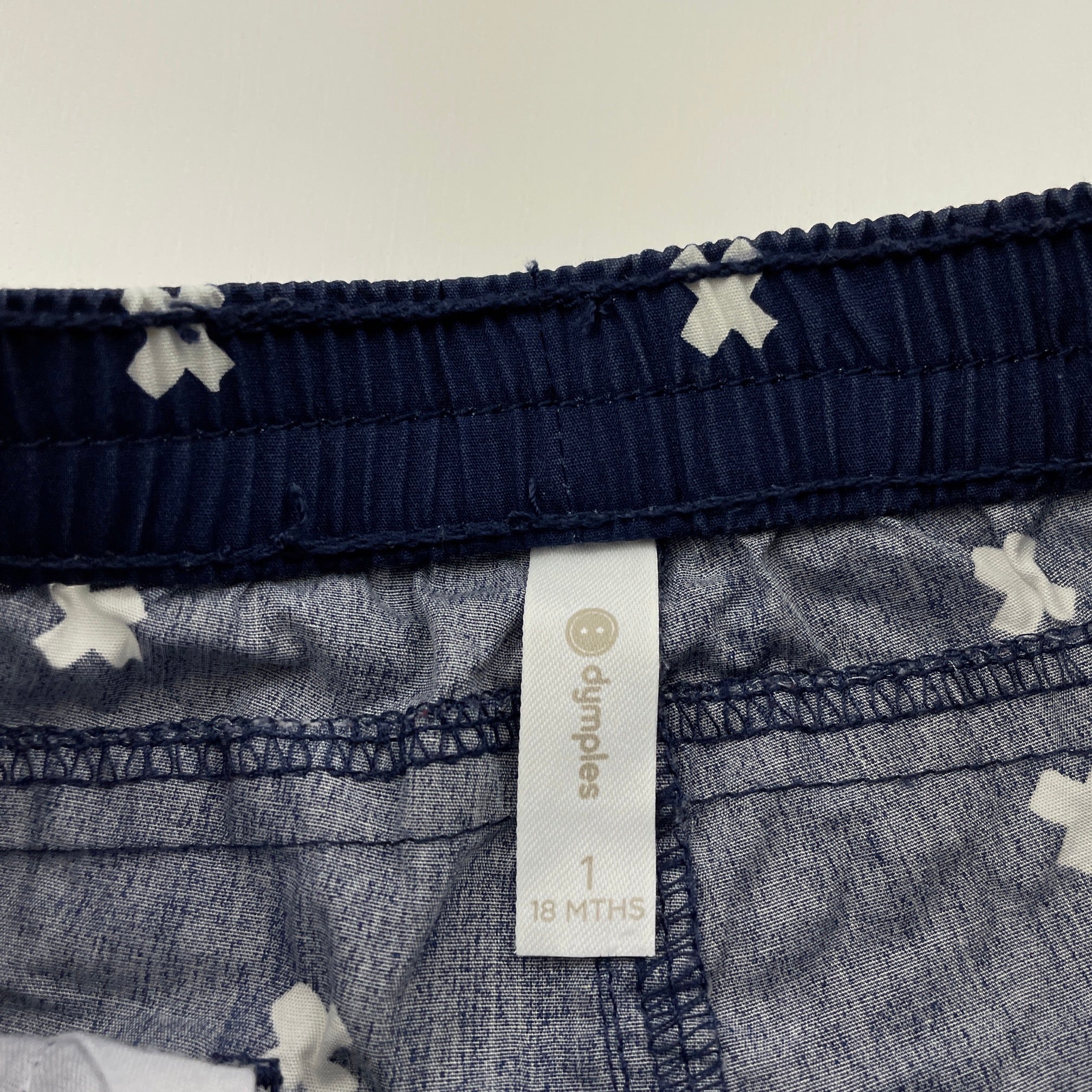 Dymples navy lightweight cotton shorts, elasticated, size 1, Pre-loved