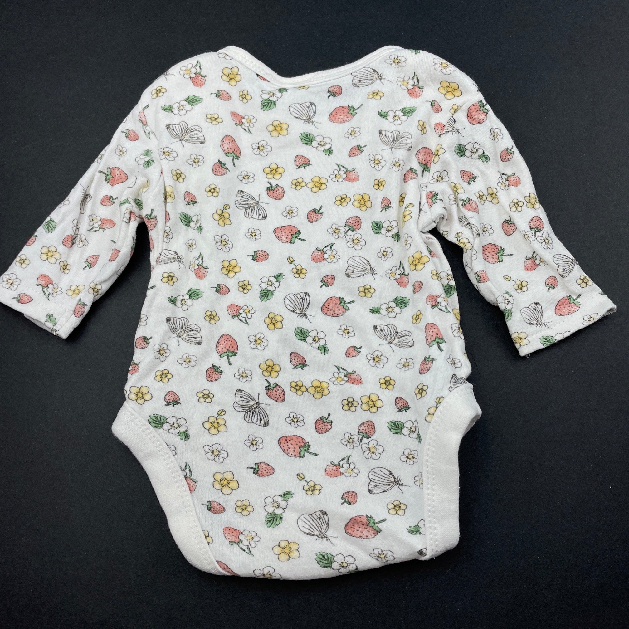 Dymples, cotton bodysuit / romper, strawberries, GUC, size 0000,