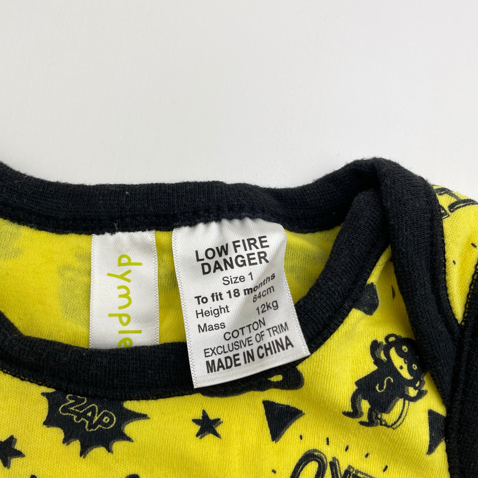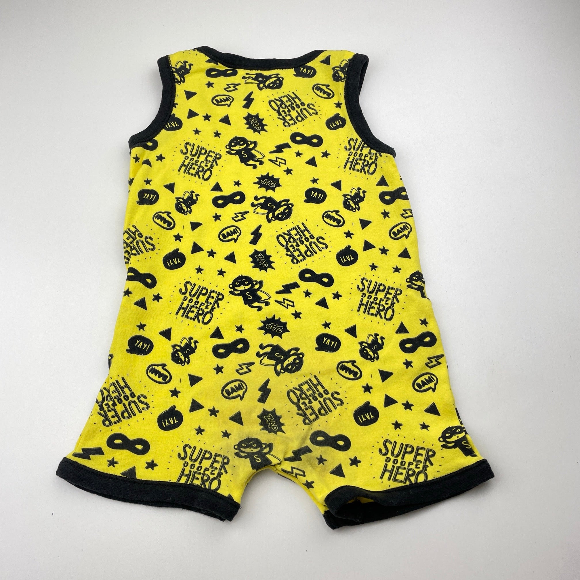 Dymples, yellow & black cotton romper, superhero, GUC, size 1,