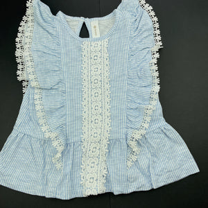 Dymples blue stripe cotton top, lace trim, size 1, Pre-loved