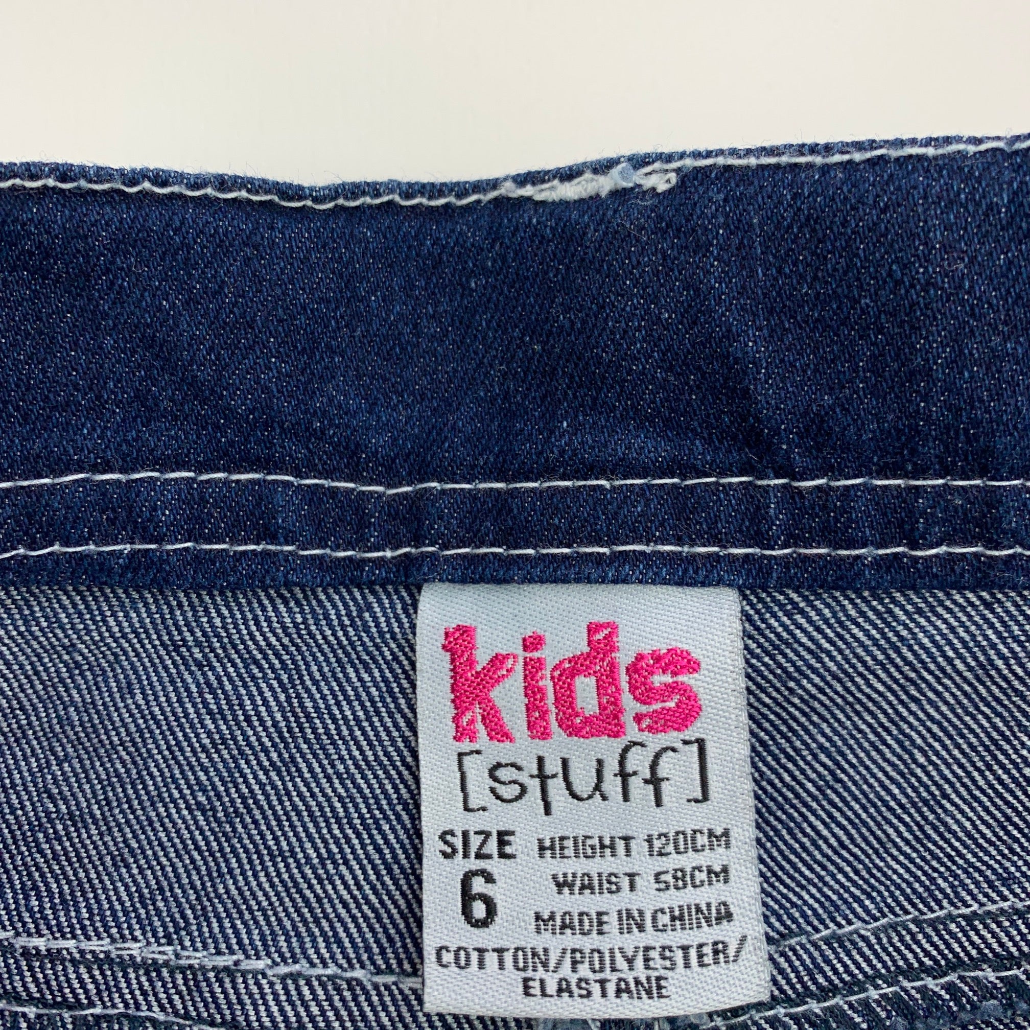 Kids Stuff, stretch denim jeans, adjustable, inside leg: 52cm, GUC, size 6,